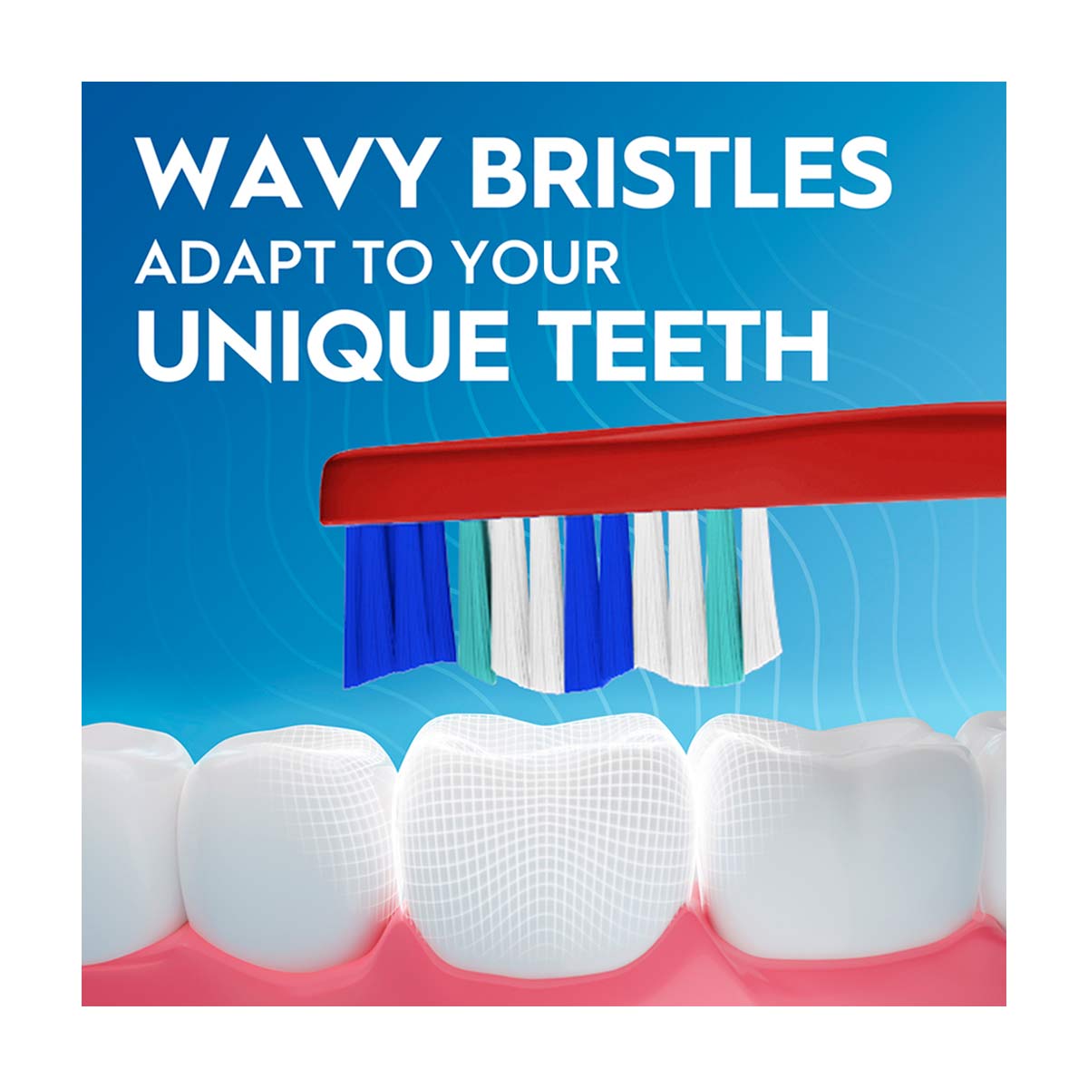 • Wavy bristles adjust to your teeth