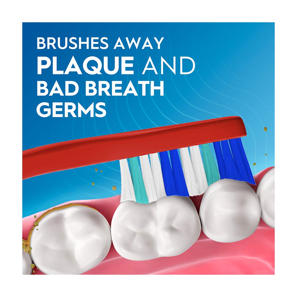 • Removes plaque and bad breath germs