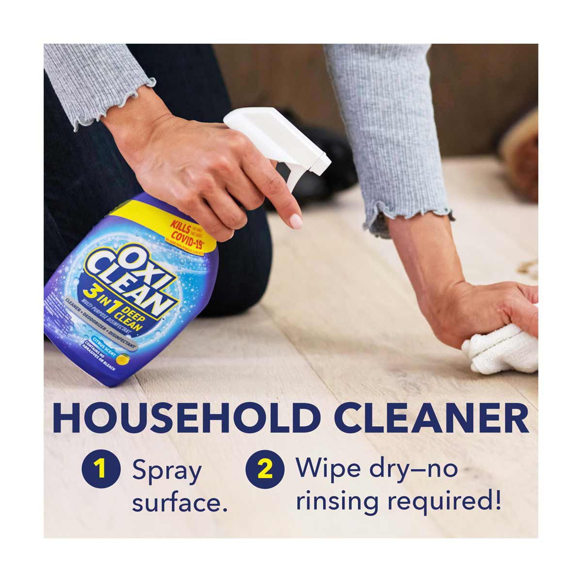 - Versatile cleaner, deodorizer, and disinfectant for multiple surfaces