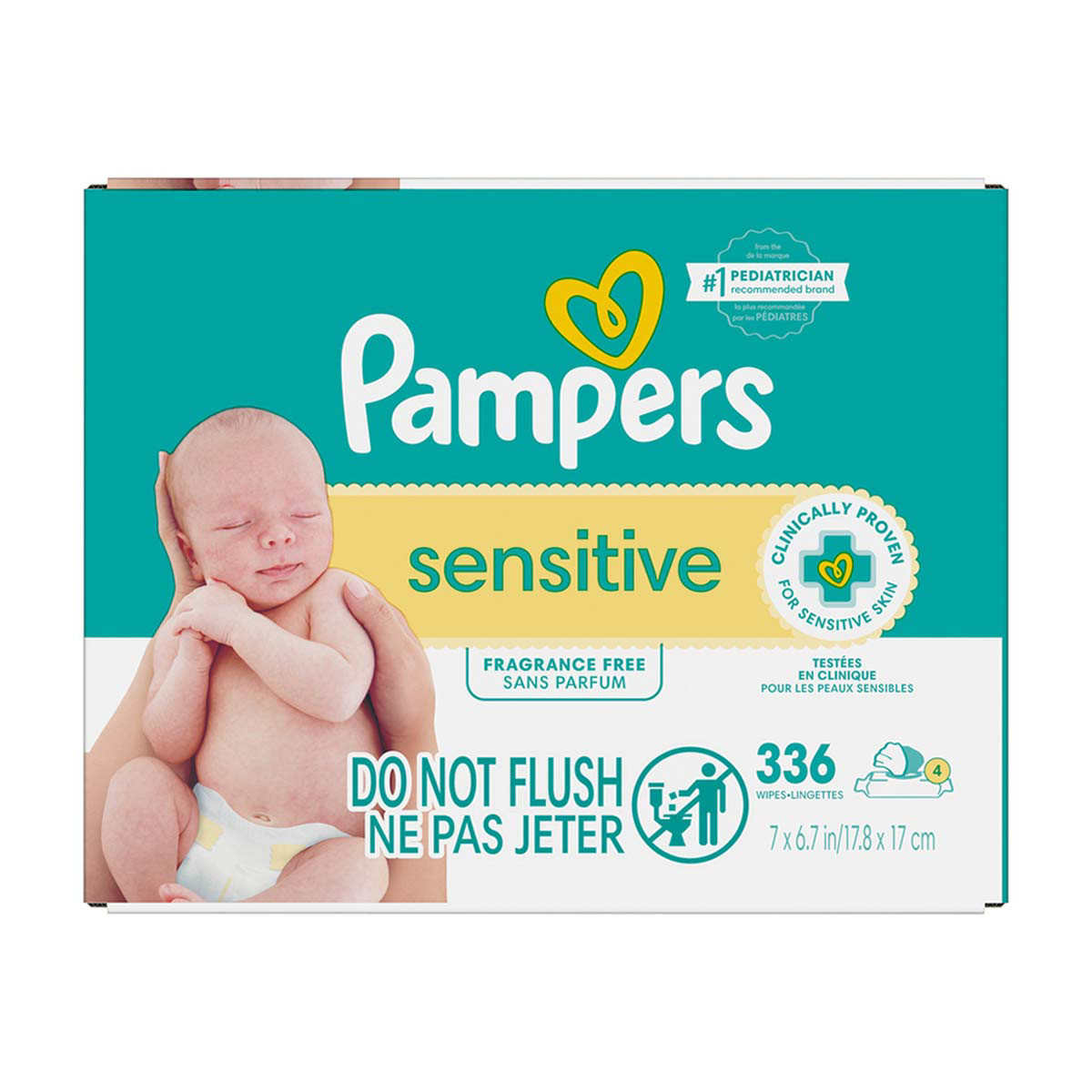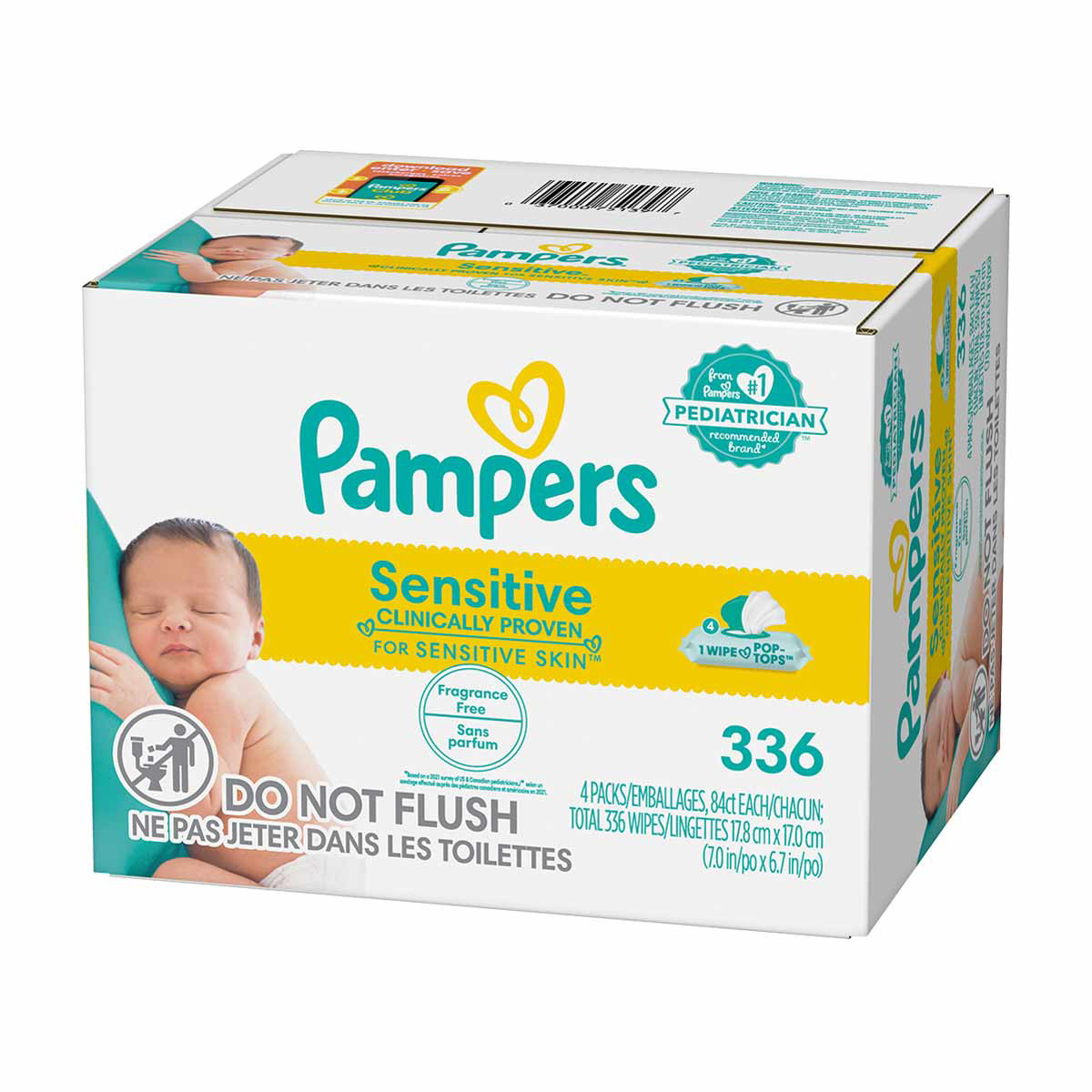 - 336 Wipes in 4 Packs of Pampers Sensitive Baby Wipes, Water Based, Hypoallergenic and Unscented
