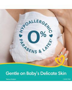 - Ingredients Petrolatum, Stearyl Alcohol, Aloe Barbadensis Leaf Extract. Warnings Keep away from any source of flame. Pampers diapers, like almost any article of clothing, will burn if exposed to flame. To avoid risk of choking on plastic, padding, or other materials, do not allow your child to tear the diaper, or handle any loose pieces of the diaper. Discard any torn or unsealed diaper, or any loose pieces of the diaper. To avoid suffocation, keep all plastic bags away from babies and children. If you notice gel-like material on your baby's skin, don't be alarmed. This comes from the diaper padding and can be easily removed by wiping your baby's skin with a soft, dry cloth