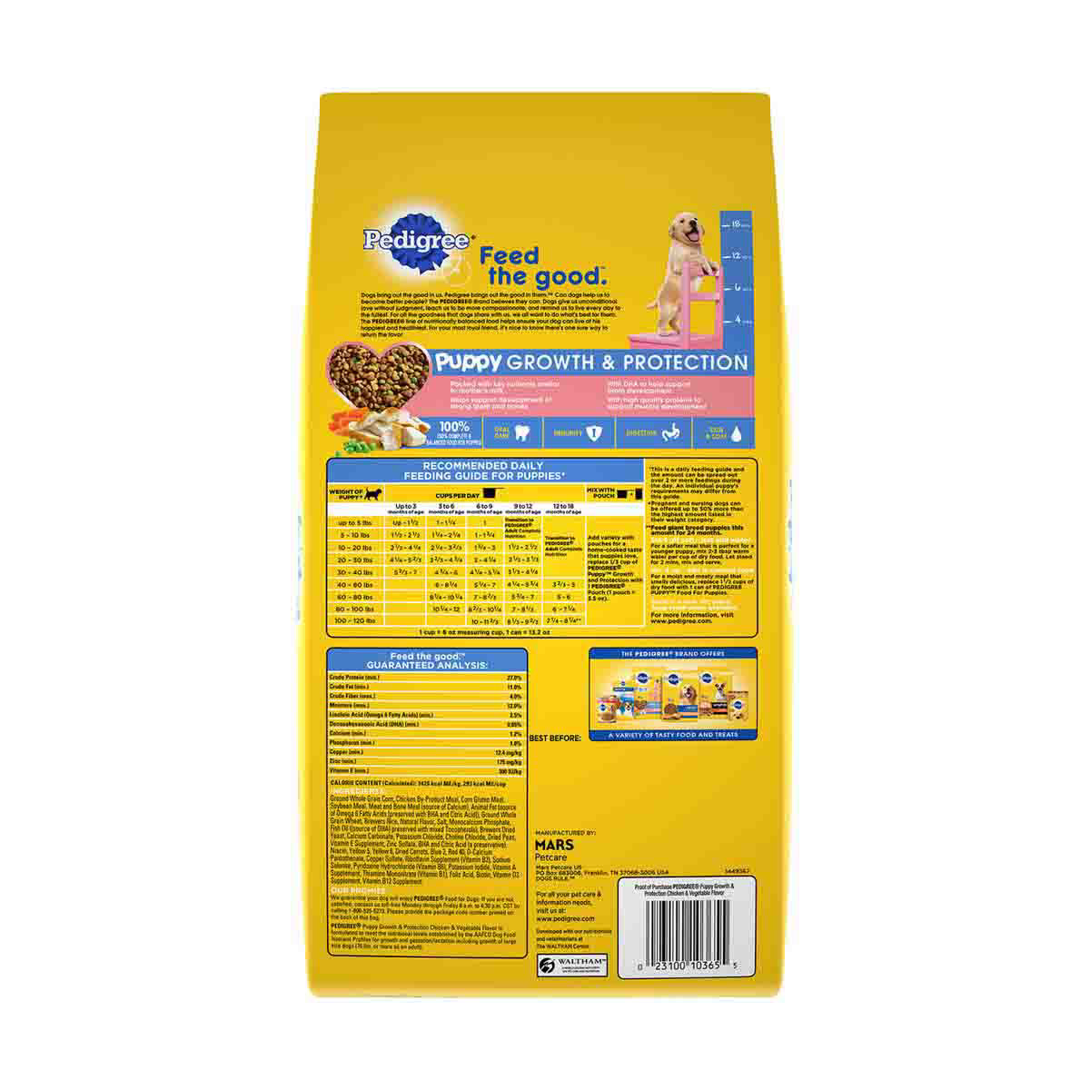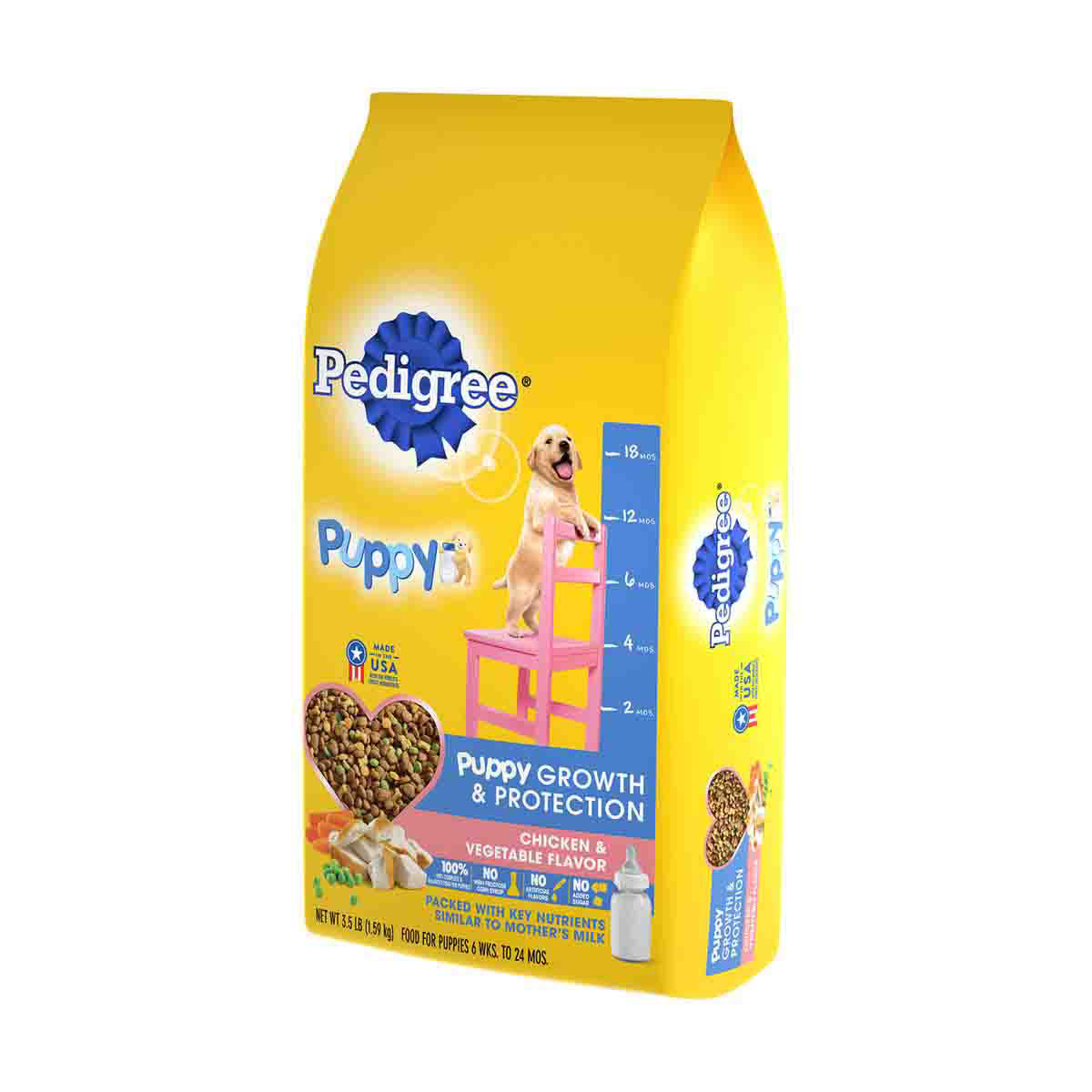 • Pedigree Puppy; Growth and Protection Chicken & Vegetable Flavor is formulated to meet the nutritional levels established by the AAFCO Dog Food Nutrient Profiles for growth and gestation/lactation