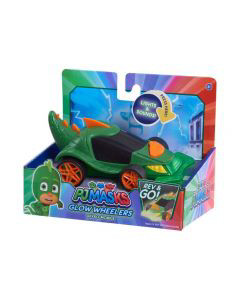 - Available in Assorted Designs: Catboy's Cat-Car, Owlette's Owl-Glider, and Gekko's Gekko-Mobile. Each PJ Masks Glow Wheeler is sold separately.