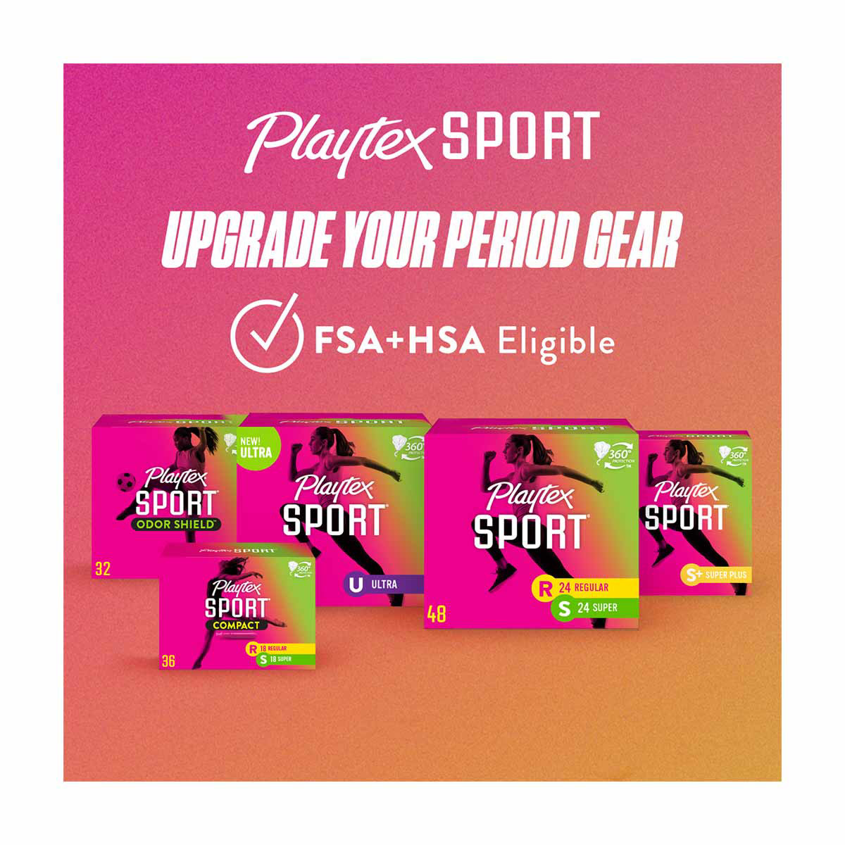• Playtex Sport Plastic Tampons Unscented Multi-Pack 12 Light, 14 Regular & 6 Super, 32 ct