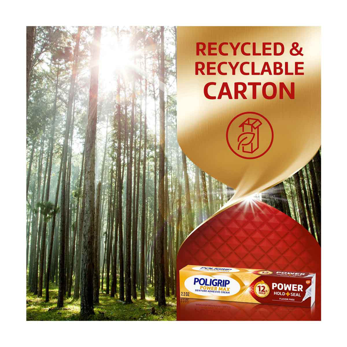 - One 2.2 oz tube of flavor free Poligrip Power Max Power Hold + Seal Denture Cream