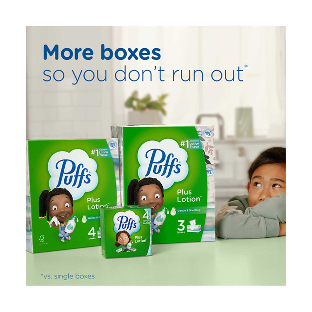 • Pack includes 4 Cubes (48 Tissues Per Cube) of Puffs Plus Lotion Facial Tissues
