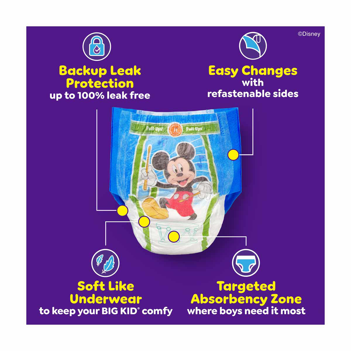 • Pull-Ups Training Pants provide up to 100% leak-free protection