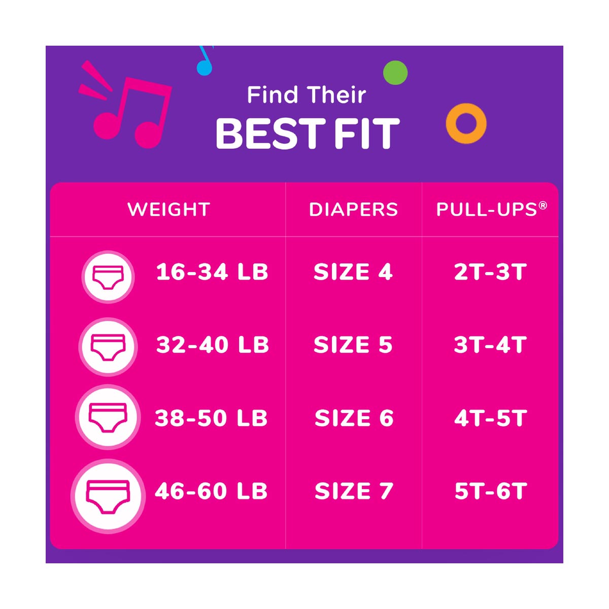 • Pull-Ups Girls’ Potty Training Pants: 14 toddler training pants, size 5T-6T