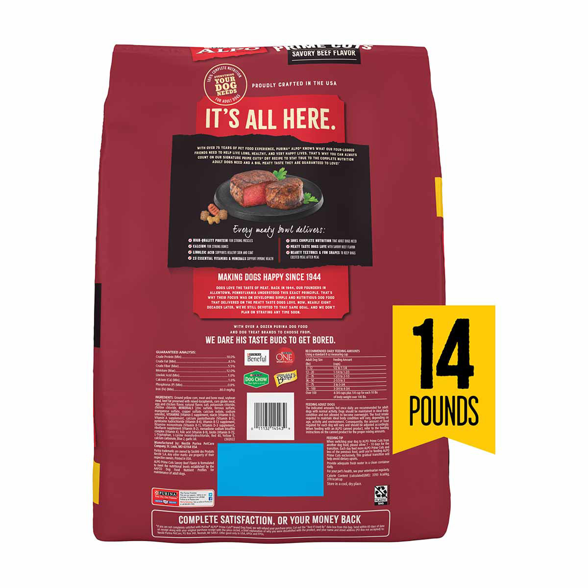 Purina Alpo Prime Cuts Savory Beef Flavor Adult Dry Dog Food, 14 lb