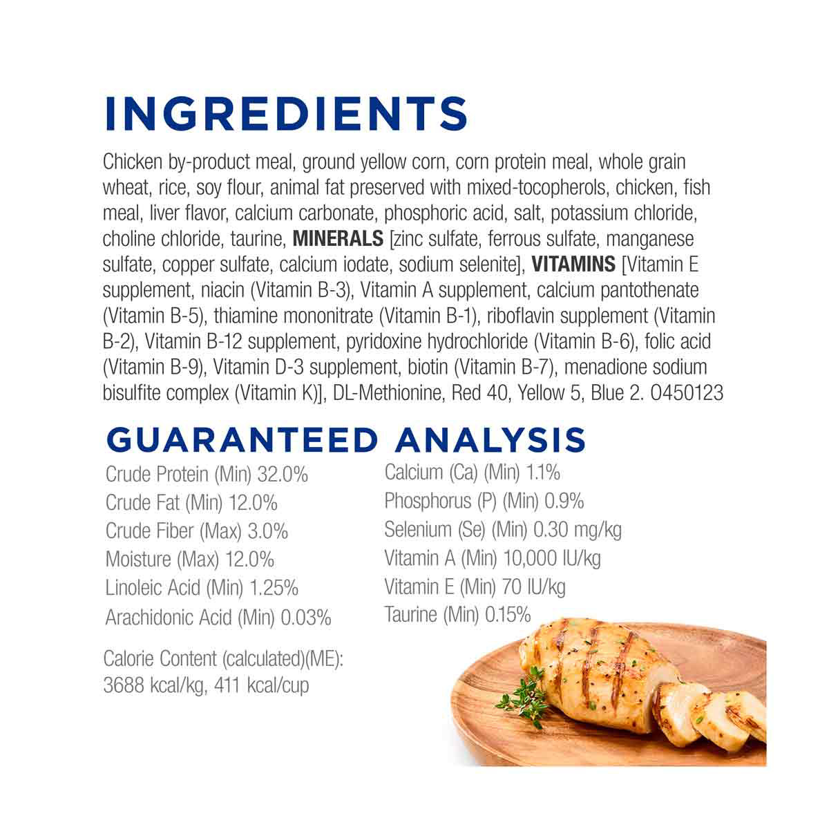 - FARM-RAISED CHICKEN: This high protein cat food is made with real and delicious farm-raised chicken plus other wholesome ingredients to provide the cornerstones of nutrition