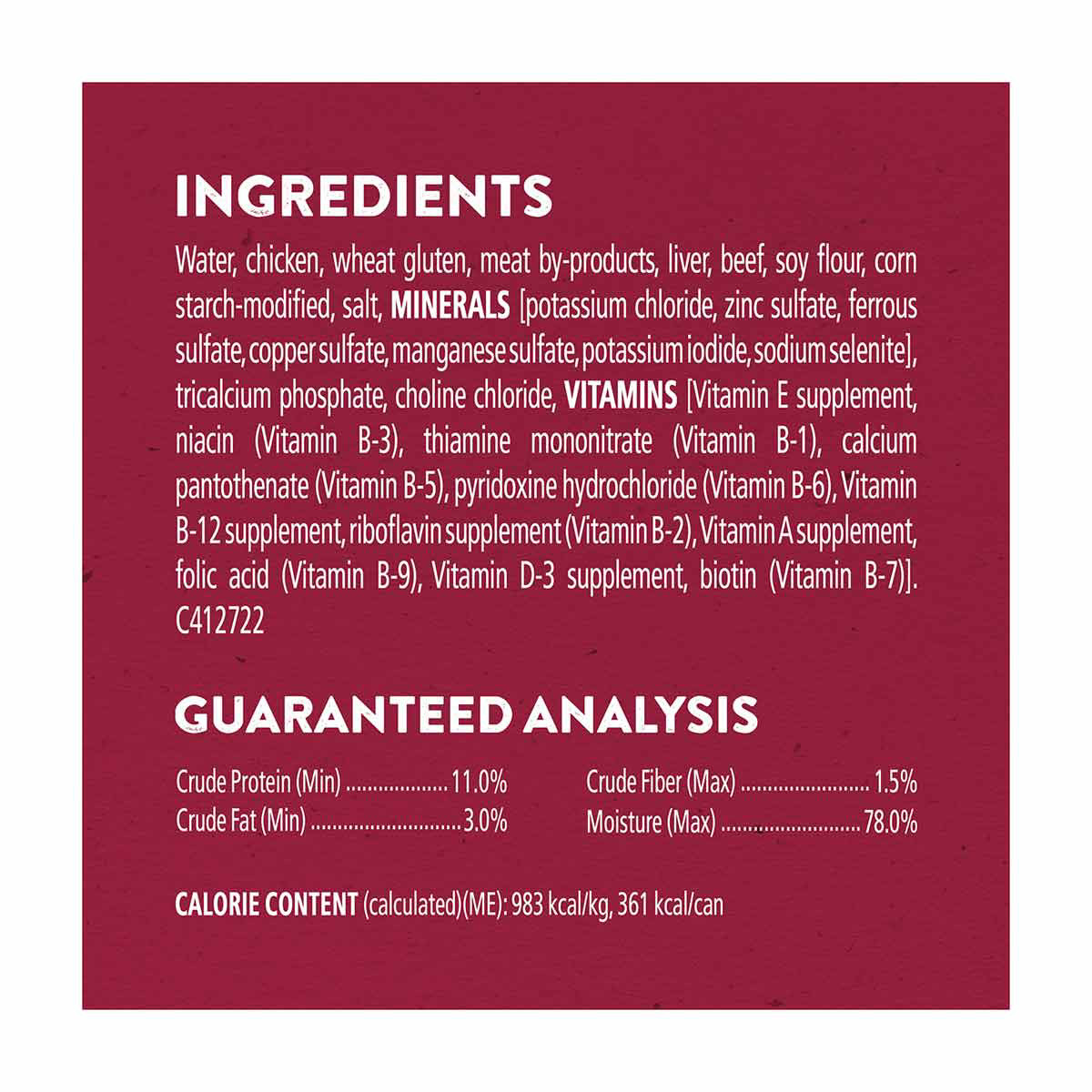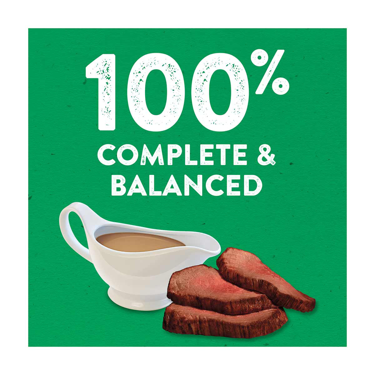 - Wet dog food that’s 100 percent complete and balanced for adult dogs