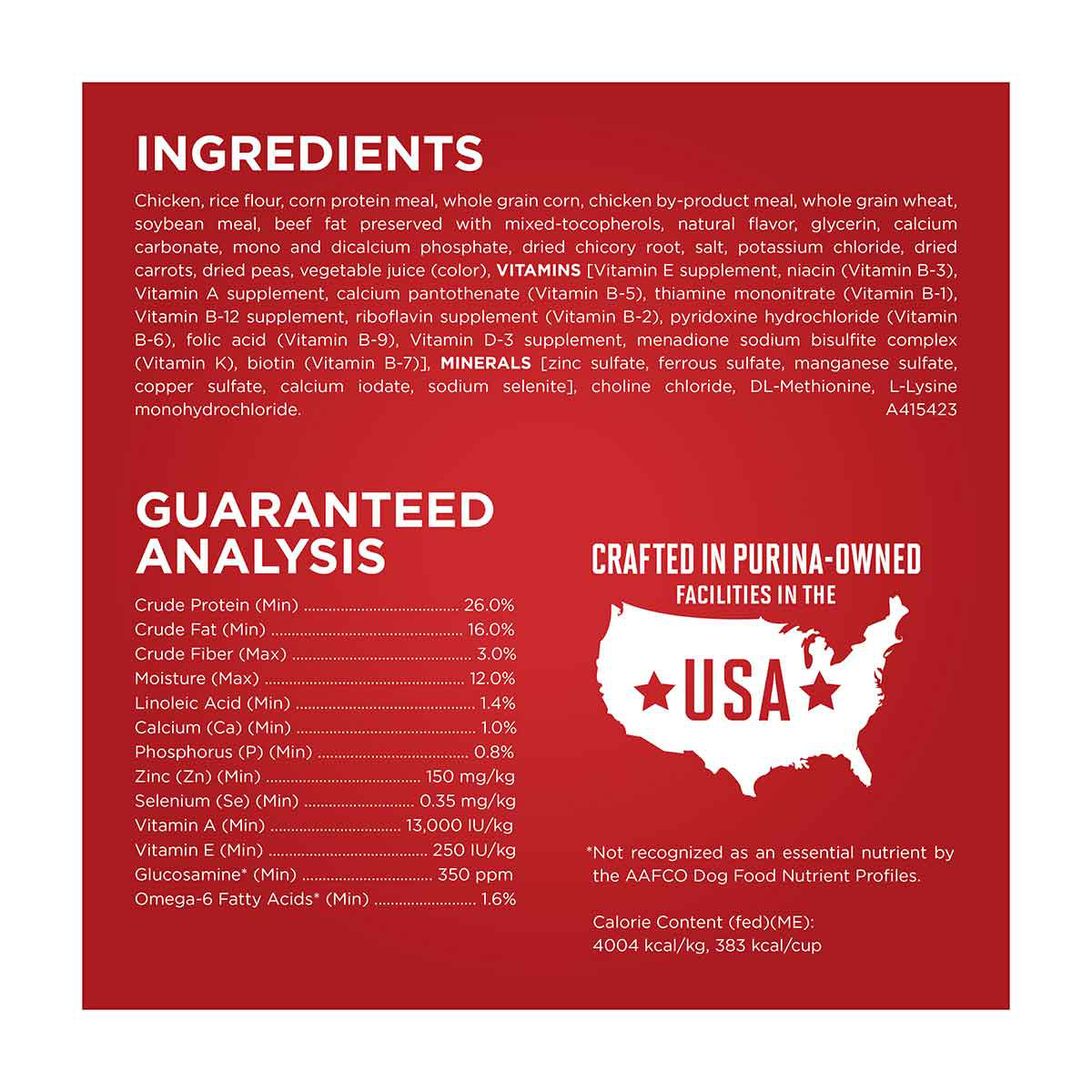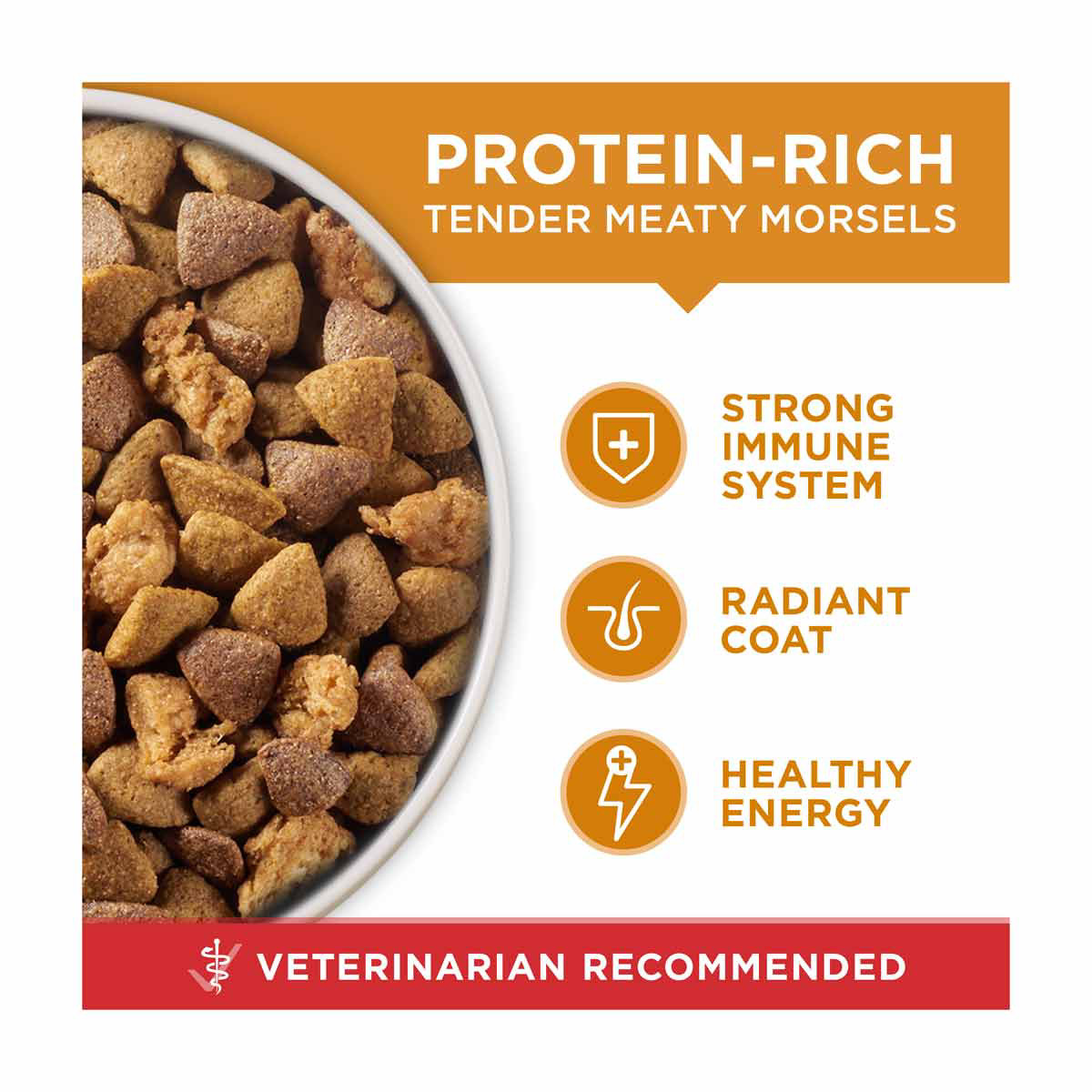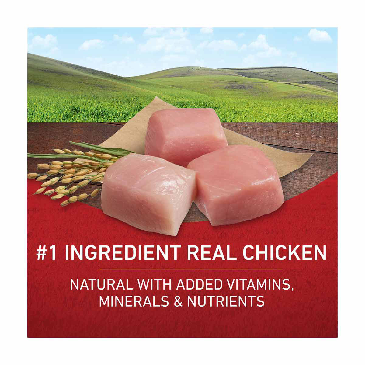 - Real chicken is the number 1 ingredient in this adult dog food featuring protein-rich, tender, meaty morsels and crunchy dog kibble for a taste dogs love