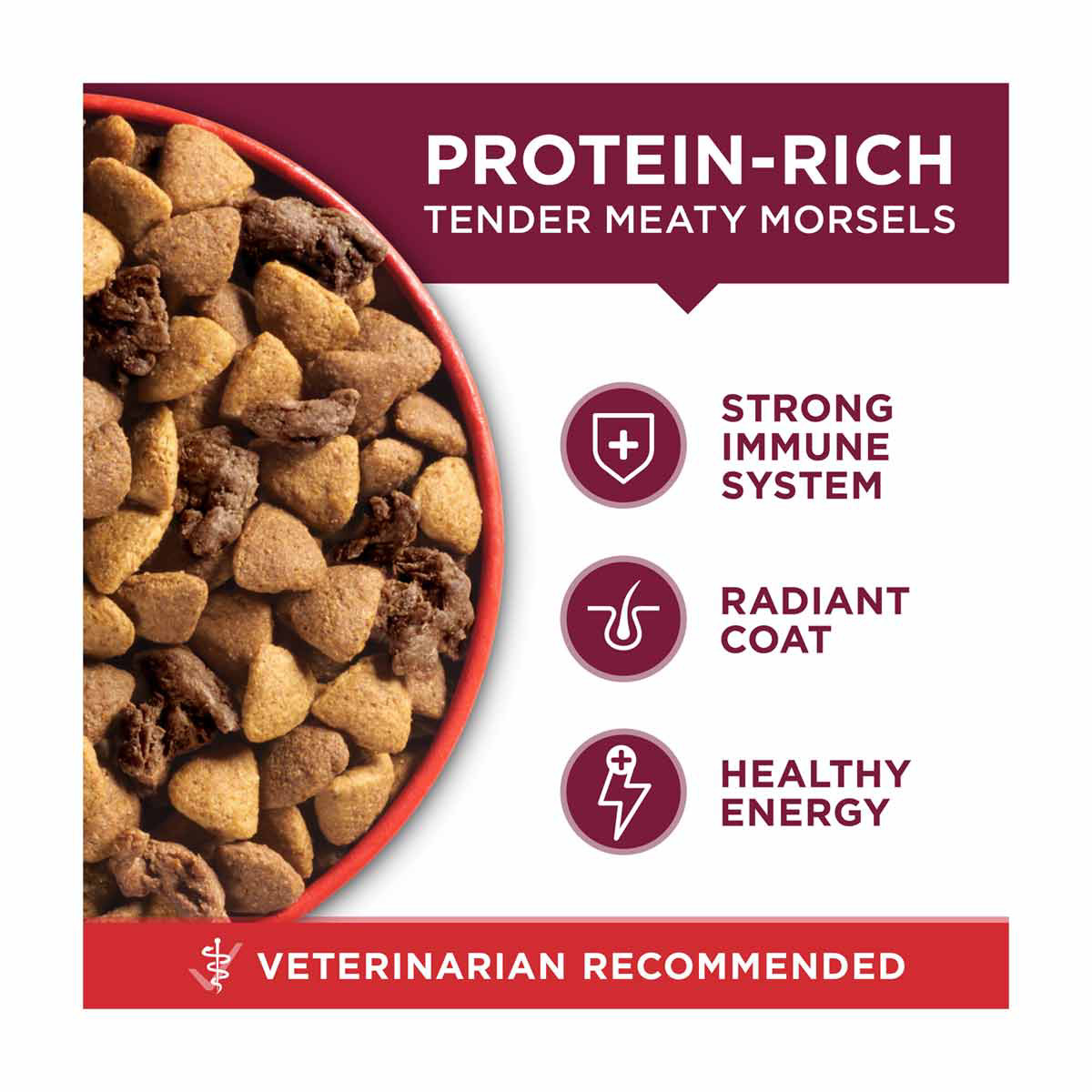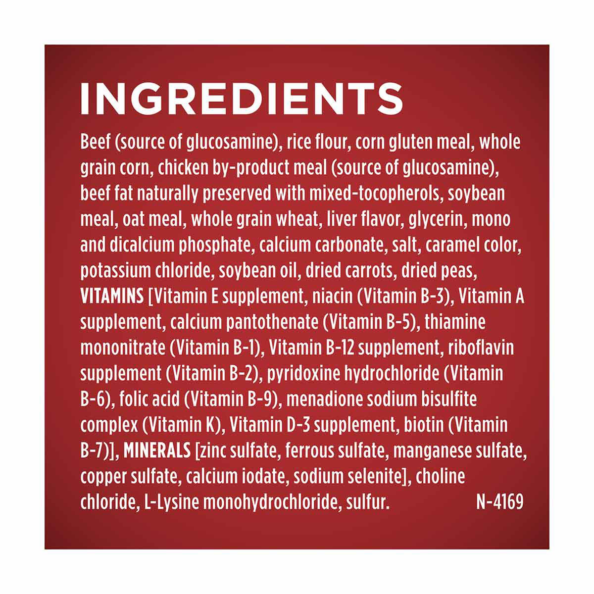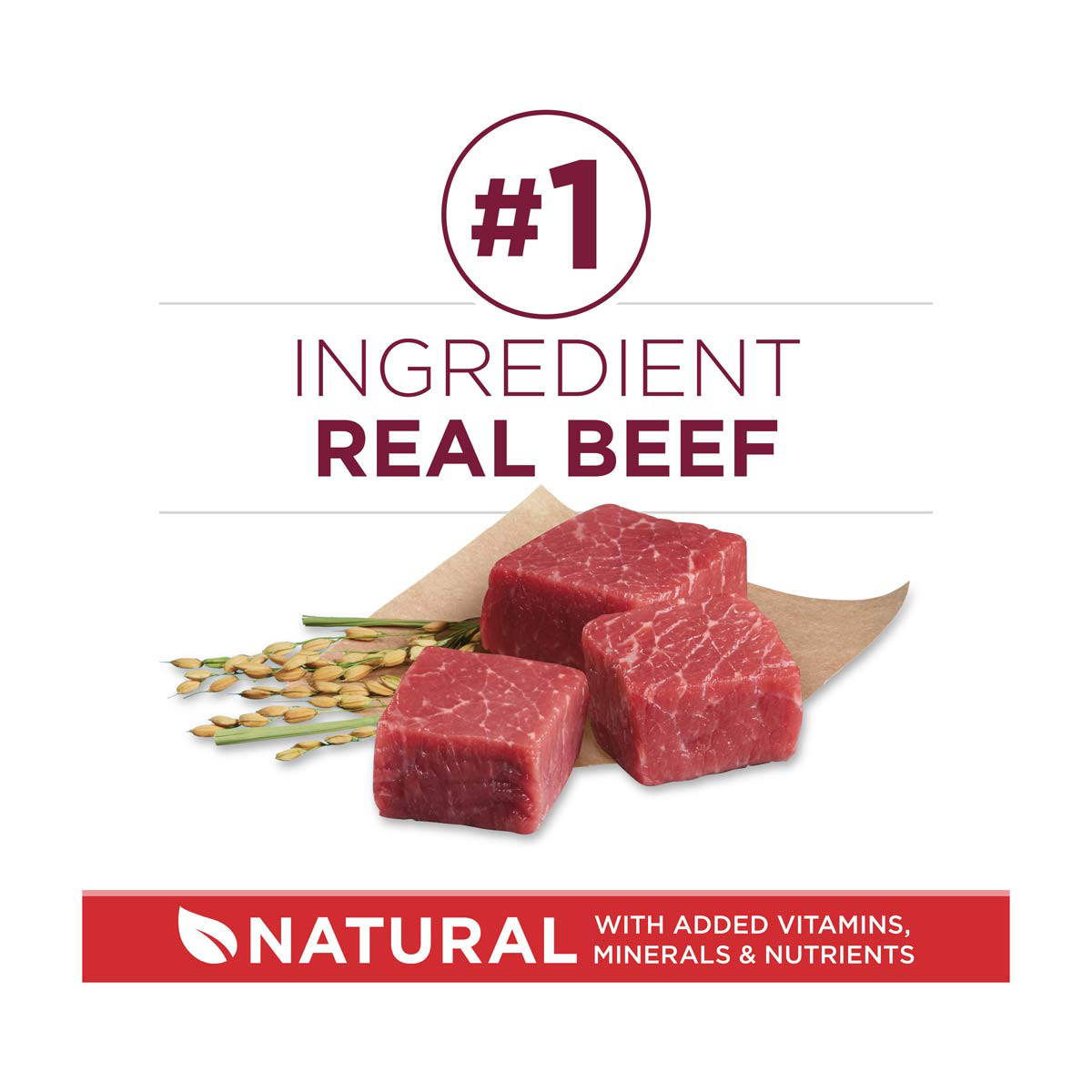 - Dog food is made with real beef as the first ingredient for strong muscles