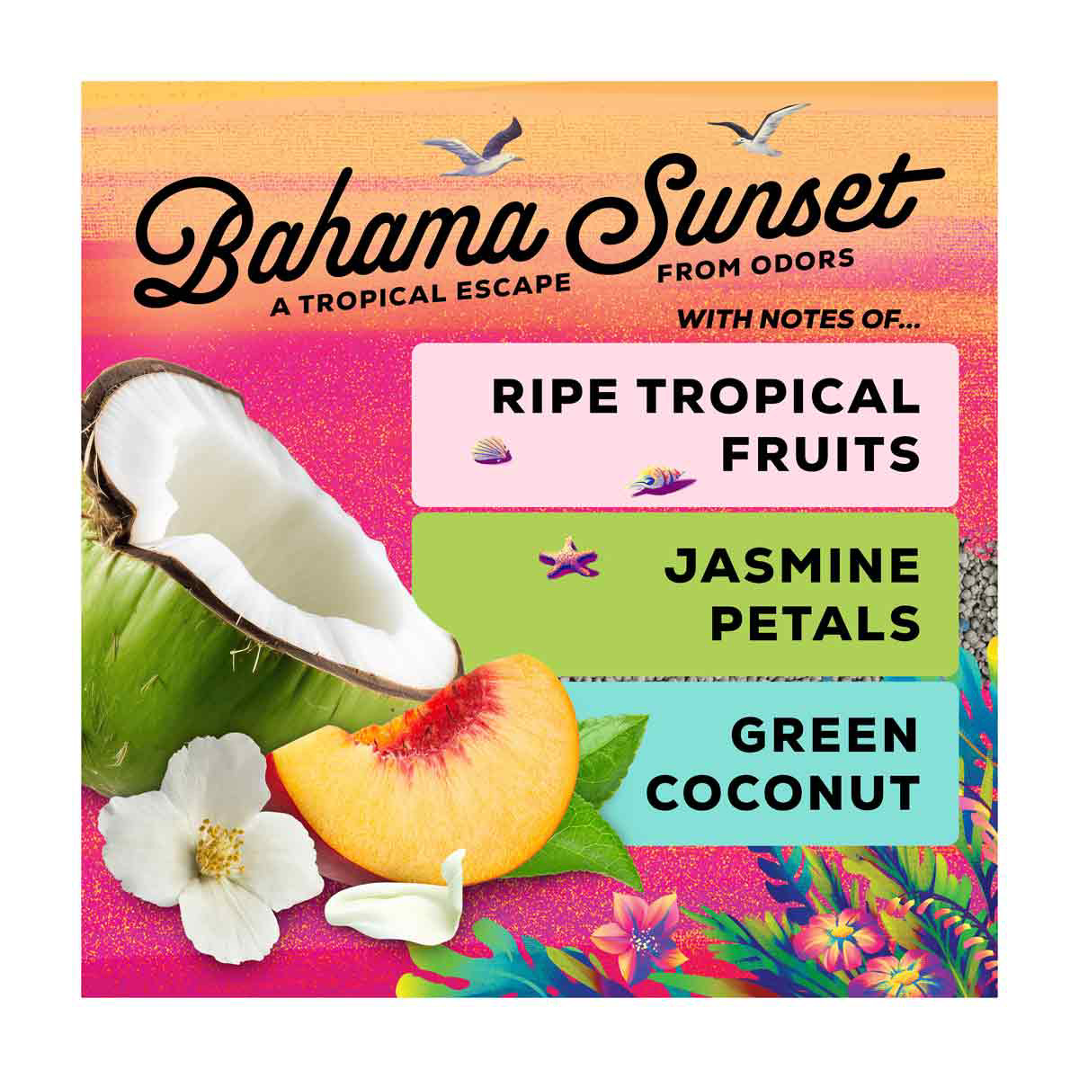 - Clumping cat litter odor control formula that helps you transform your cat’s litter box into an oasis from odors while transporting you to a tropical purradise with its Bright Tropical fragrance
