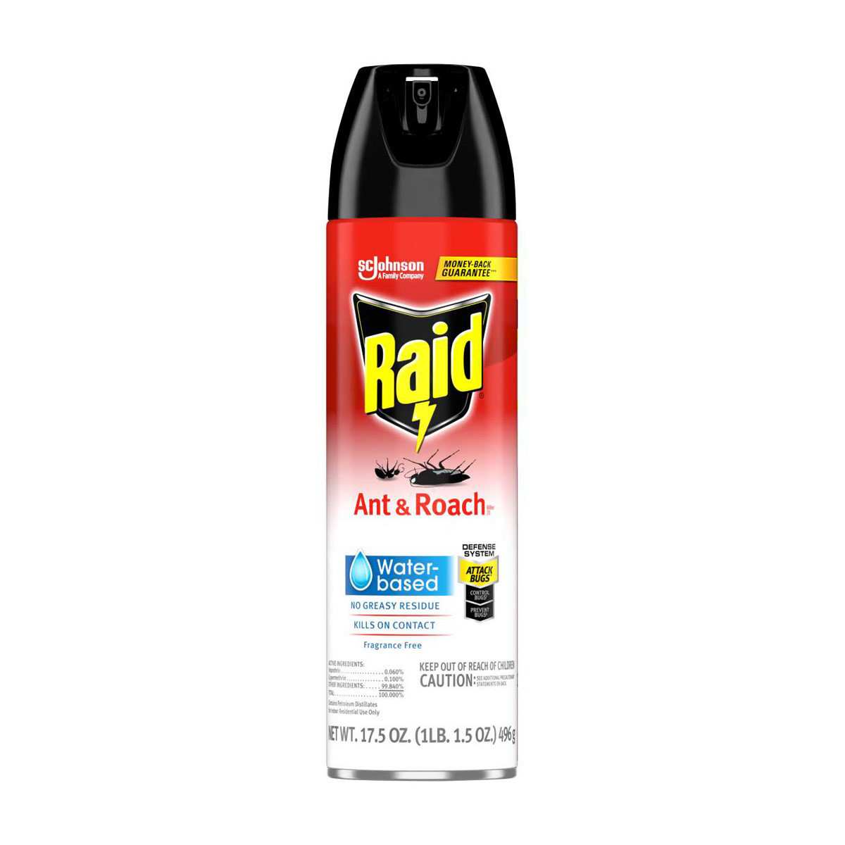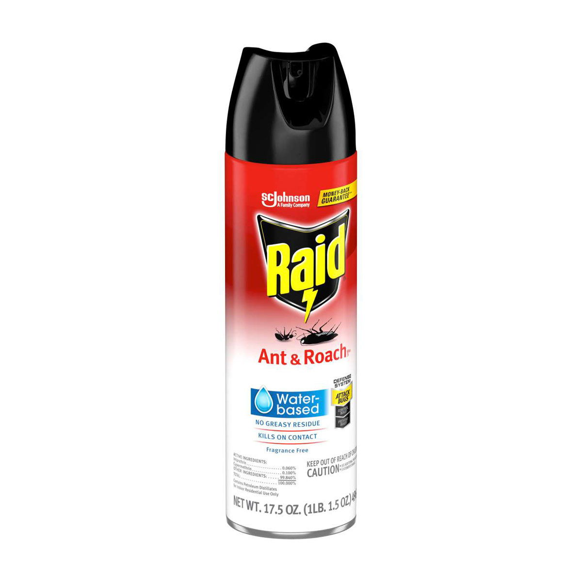 - Raid® Ant & Roach Aerosol Bug Spray kills a wide variety of insects including Cockroaches, Waterbugs, Palmetto bugs, Ants, Silverfish, Carpet Beetles, Crickets, Earwigs, Household Spiders, Multicolored Asian Lady Beetles, Stinkbugs, Scorpions, Black Widow Spiders