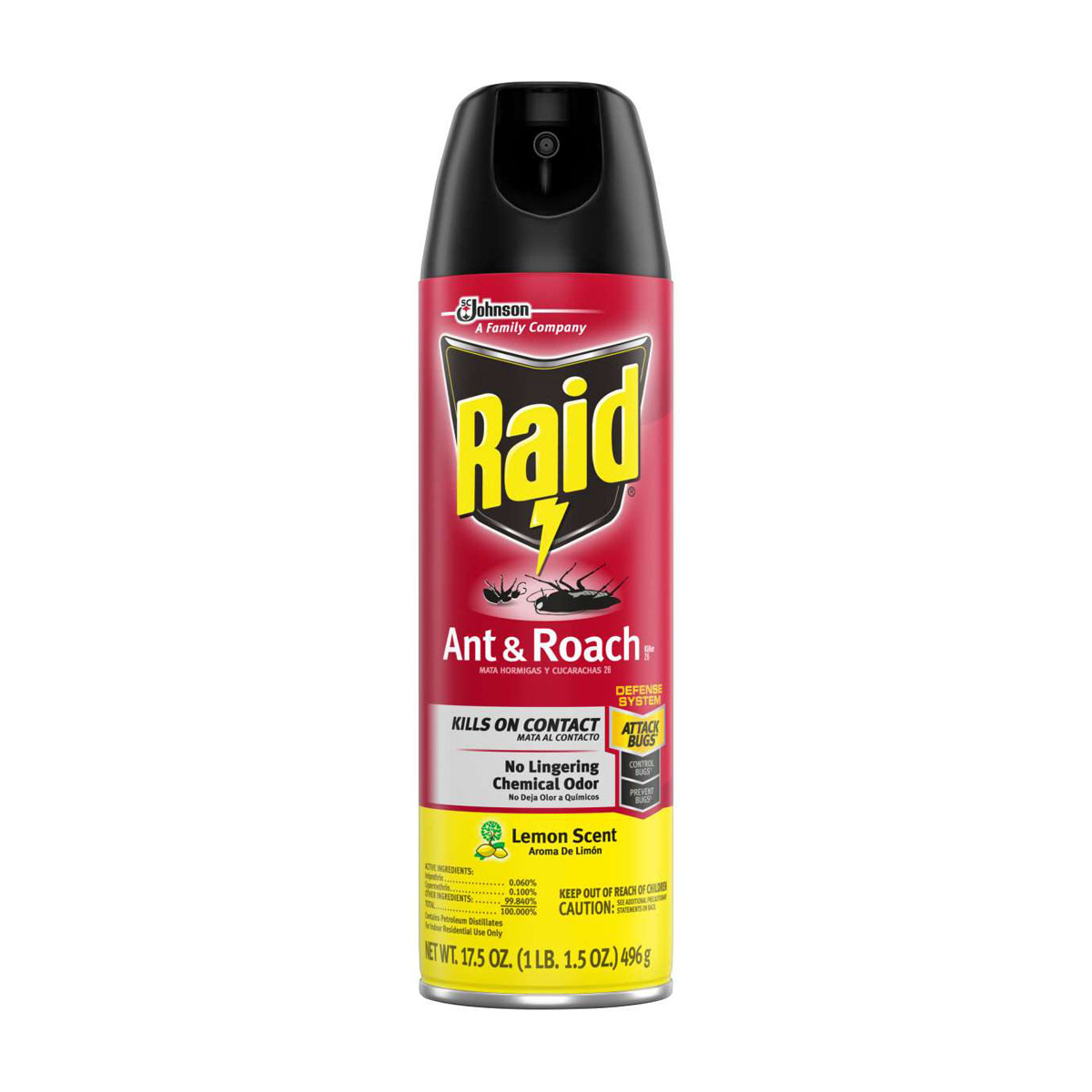 - Raid® Ant & Roach kills a wide variety of insects including Cockroaches, Waterbugs, Palmetto bugs, Ants, Silverfish, Carpet Beetles, Crickets, Earwigs, Household Spiders, Multicolored Asian Lady Beetles, Stinkbugs, Scorpions, Black Widow Spiders