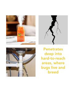 - Emits penetrating fog to seek out and kill roaches, fleas, and other bugs where they hide
