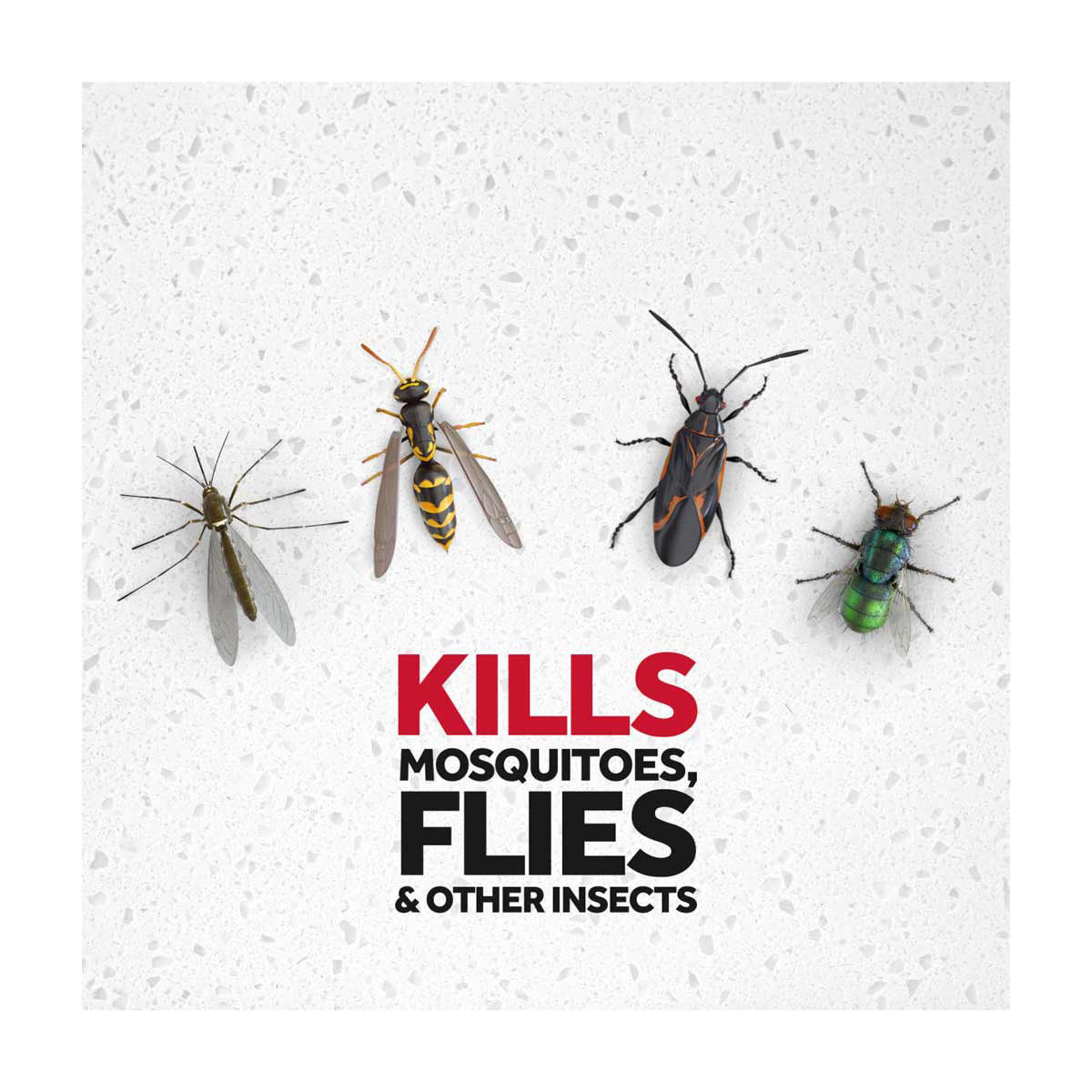 • Fly spray that kills hornets, wasps, yellow jackets, boxelder bugs, non-biting gnats, and more