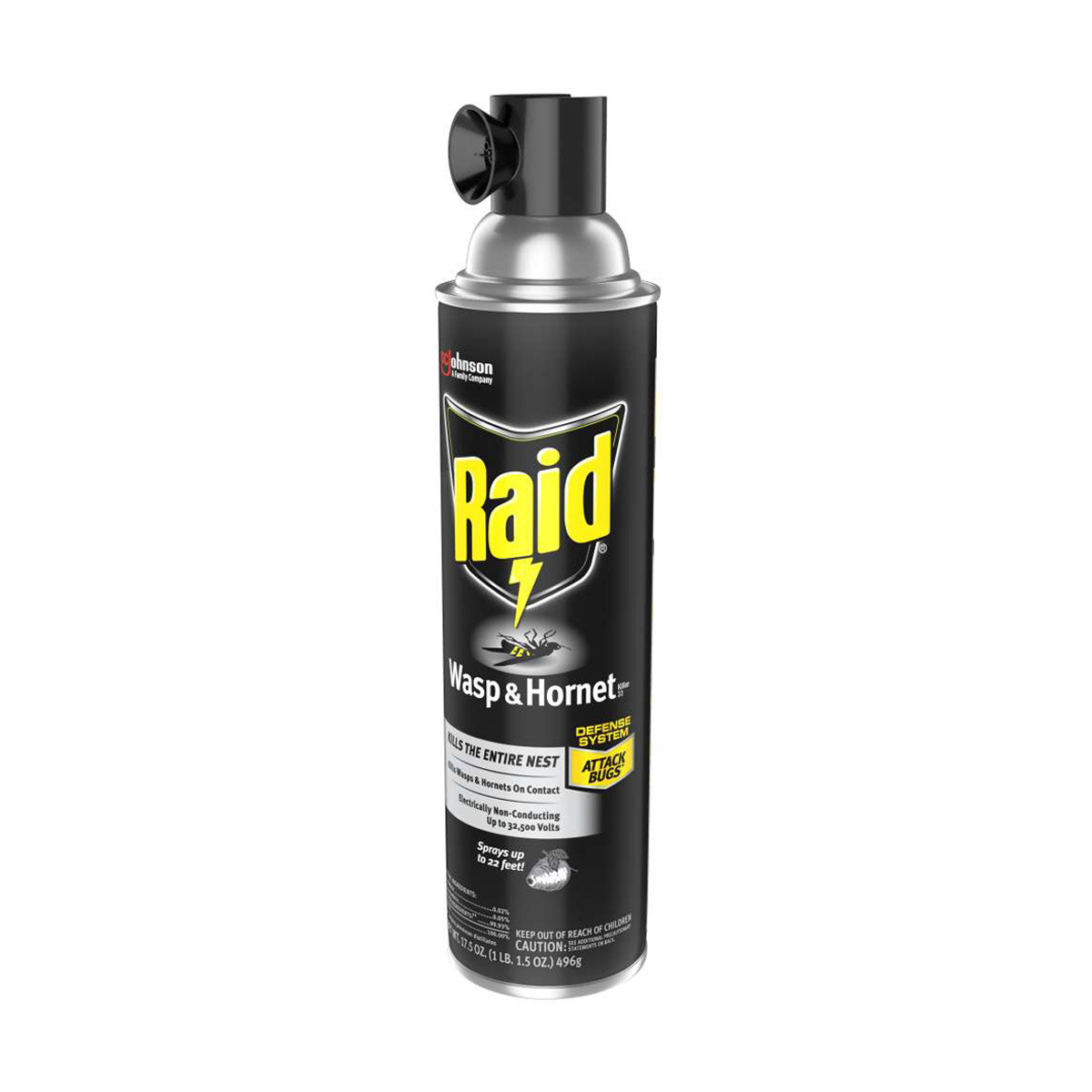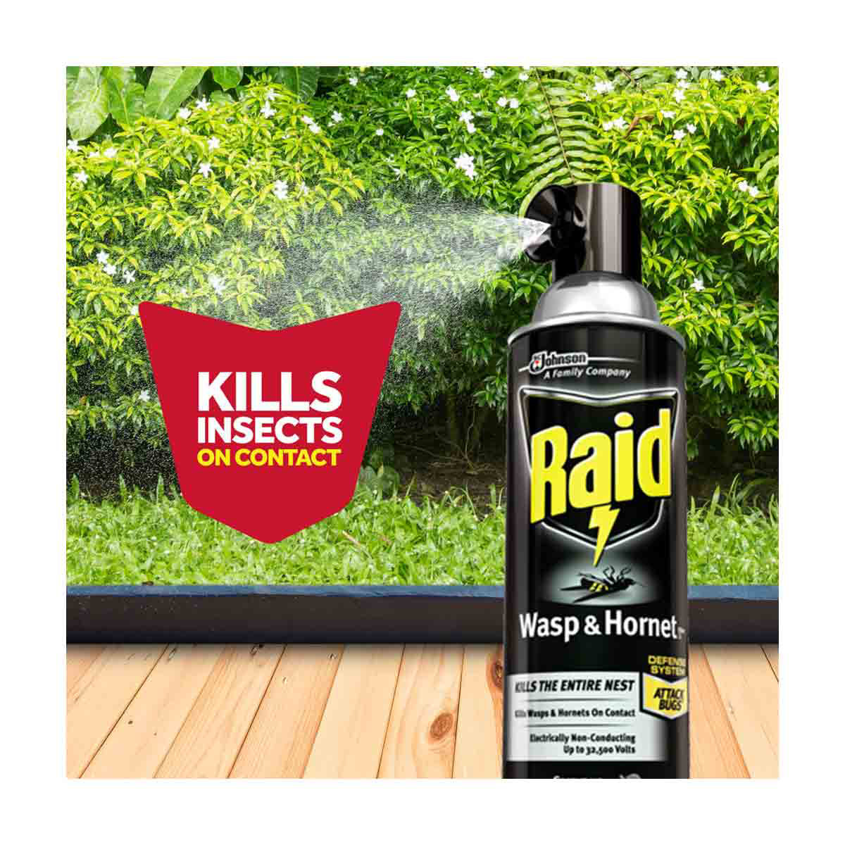 • Raid Wasp & Hornet Killer 33 sprays up to 22 feet for a safer solution