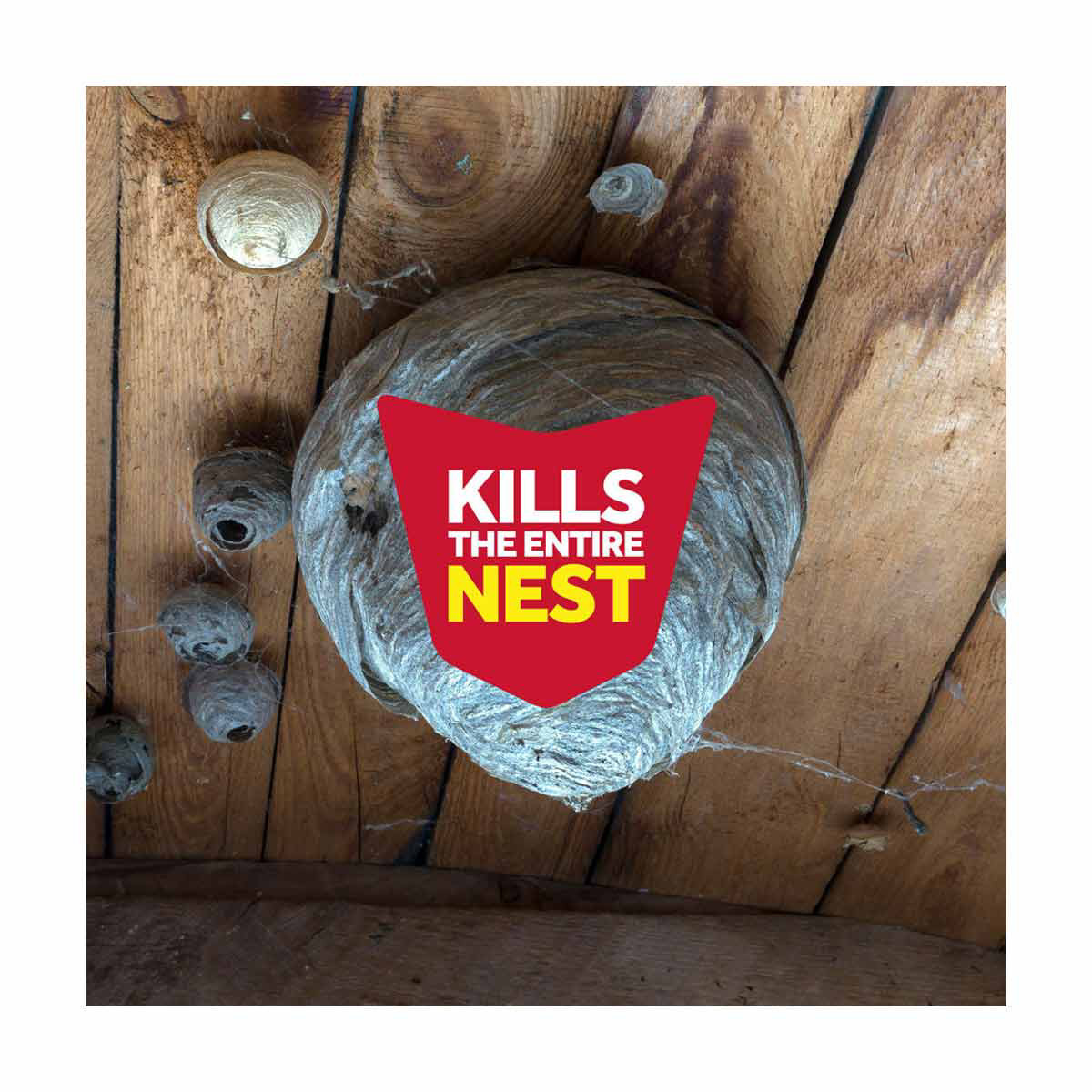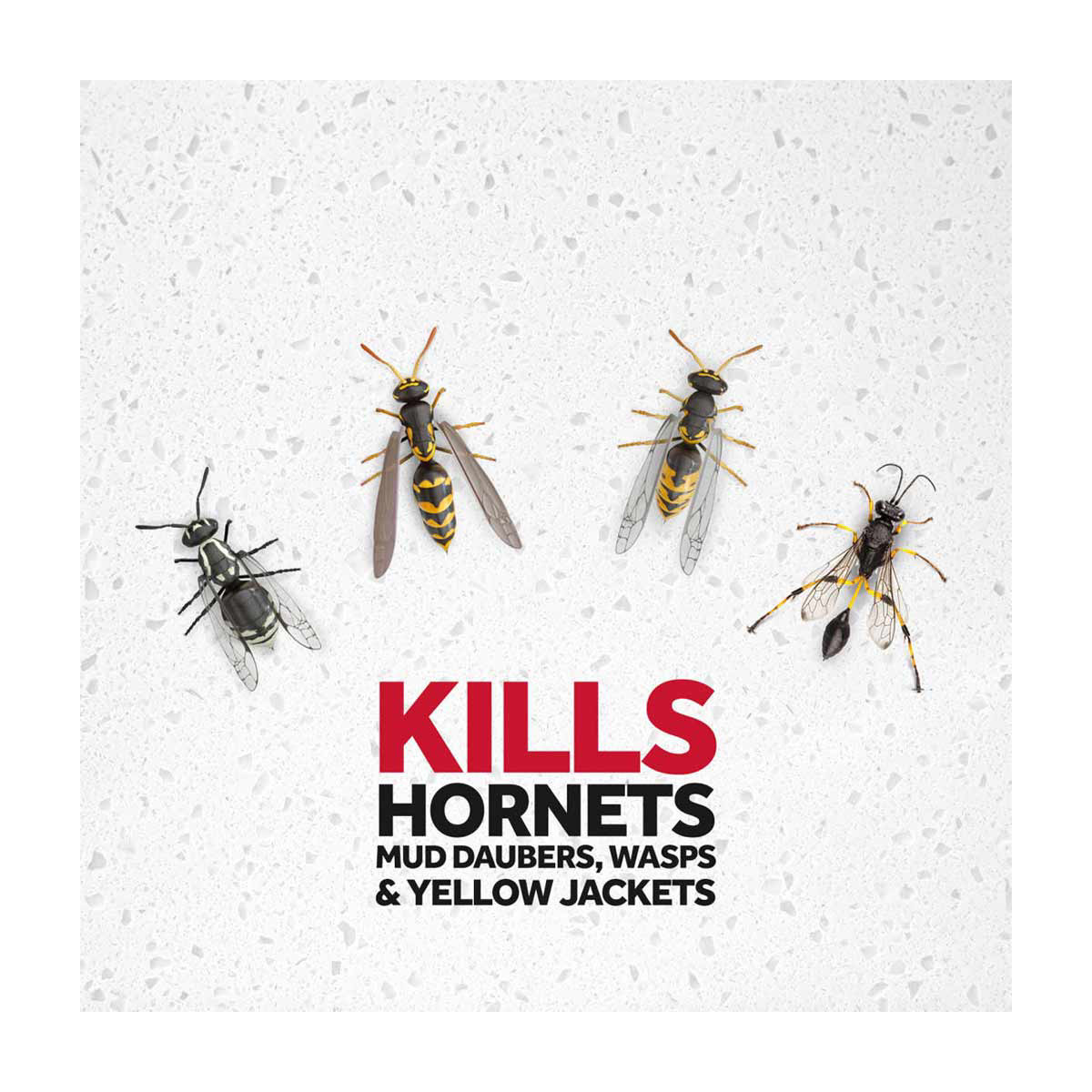 • Effective against hornets, mud daubers, wasps & yellow jackets on contact
