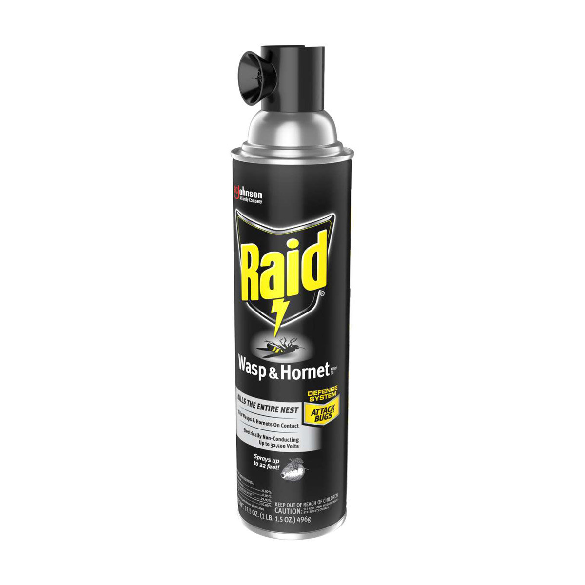 - Raid spray is effective against hornets, mud daubers, wasps and yellow jackets on contact