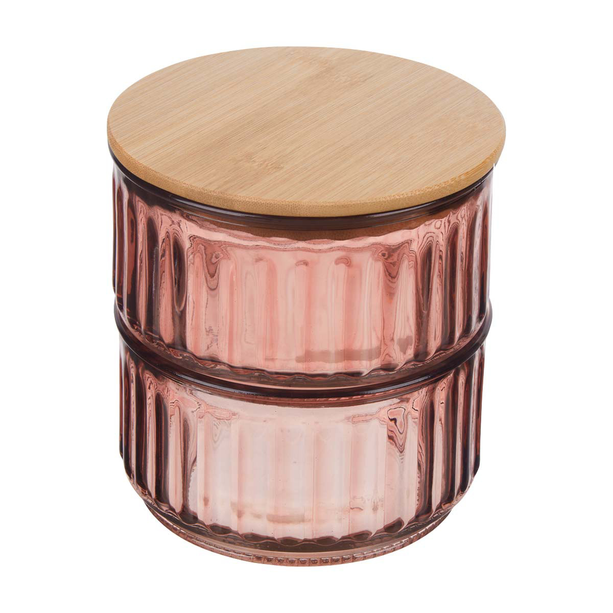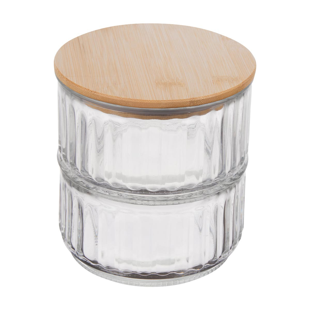 Ribbed Glass 2 Tier Canister with Bamboo Lid, Assorted