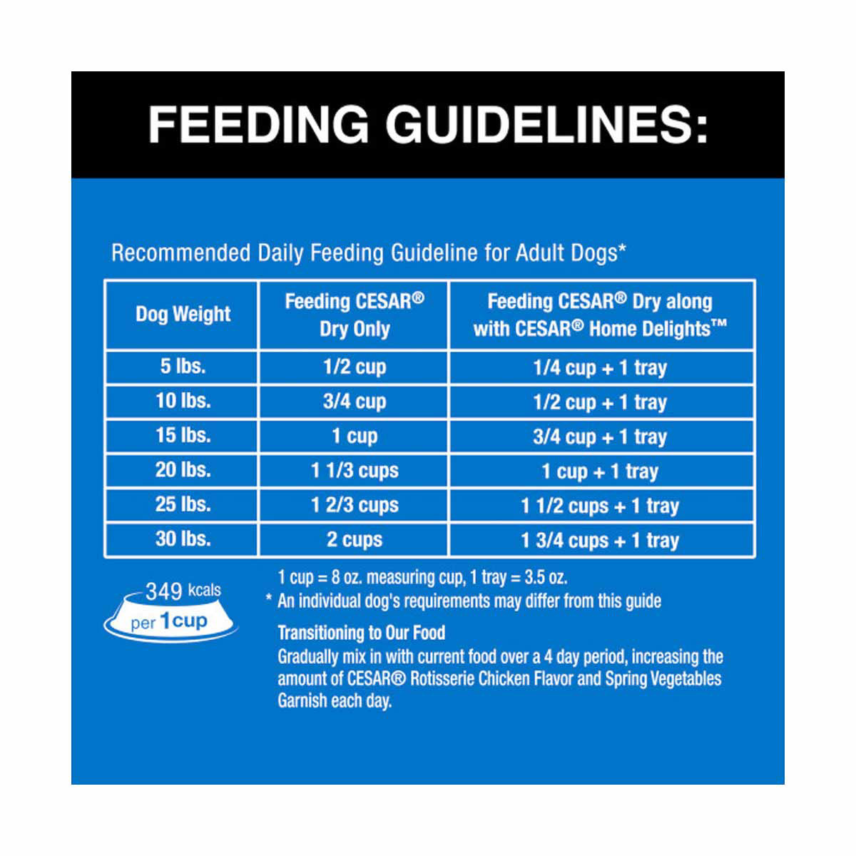 • Cesar Dry Dog Food is made with real chicken as the first ingredient for a taste dogs love