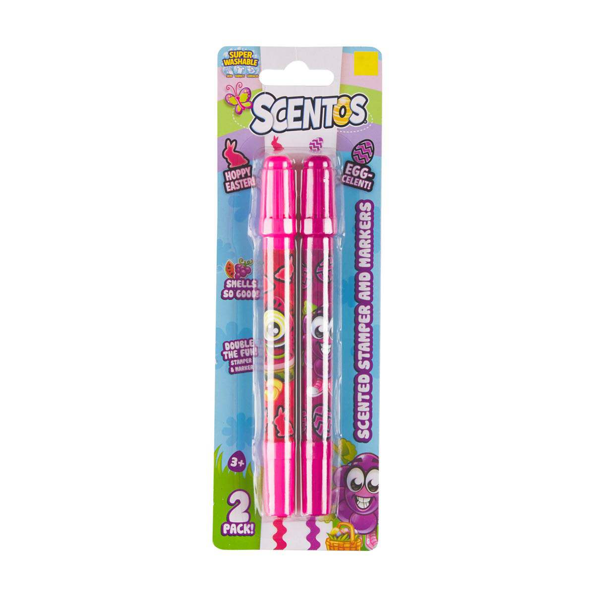 - Includes 2 scented markers with stampers in assorted colors and scents