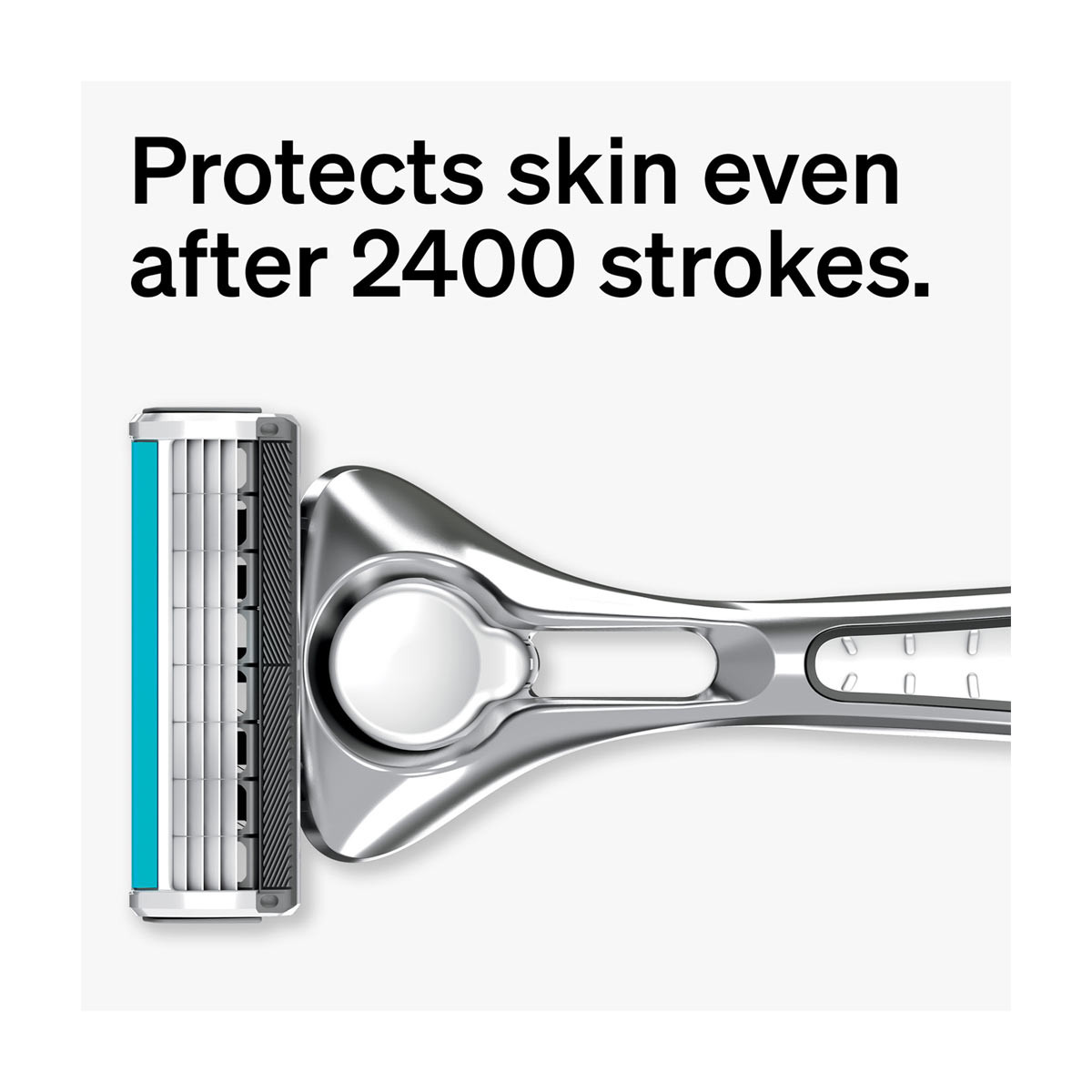 - PRIORITIZING PROTECTION – These razor blades for men are designed to protect skin even after 2400 strokes and have a lubricating strip enriched with Aloe, Vitamin E, and Vitamin B5 for a smooth glide and added protection
