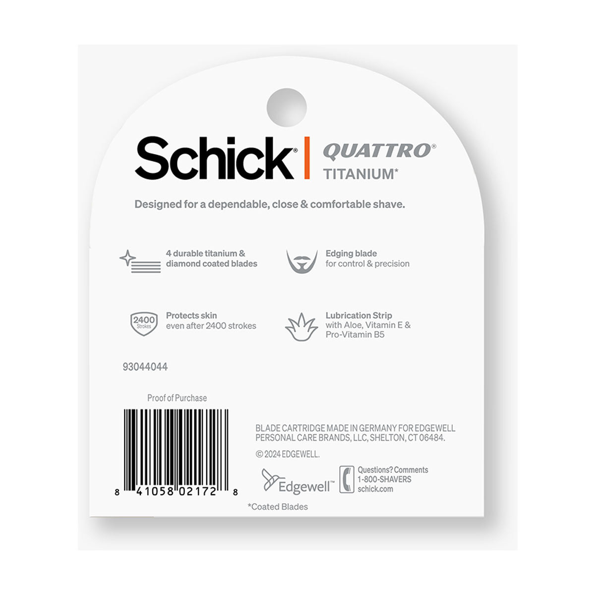 - CLOSENESS YOU CAN COUNT ON – Each Schick Quattro Titanium Refill has 4 durable titanium & diamond coated blades, and is designed to deliver a dependable, close and comfortable shave