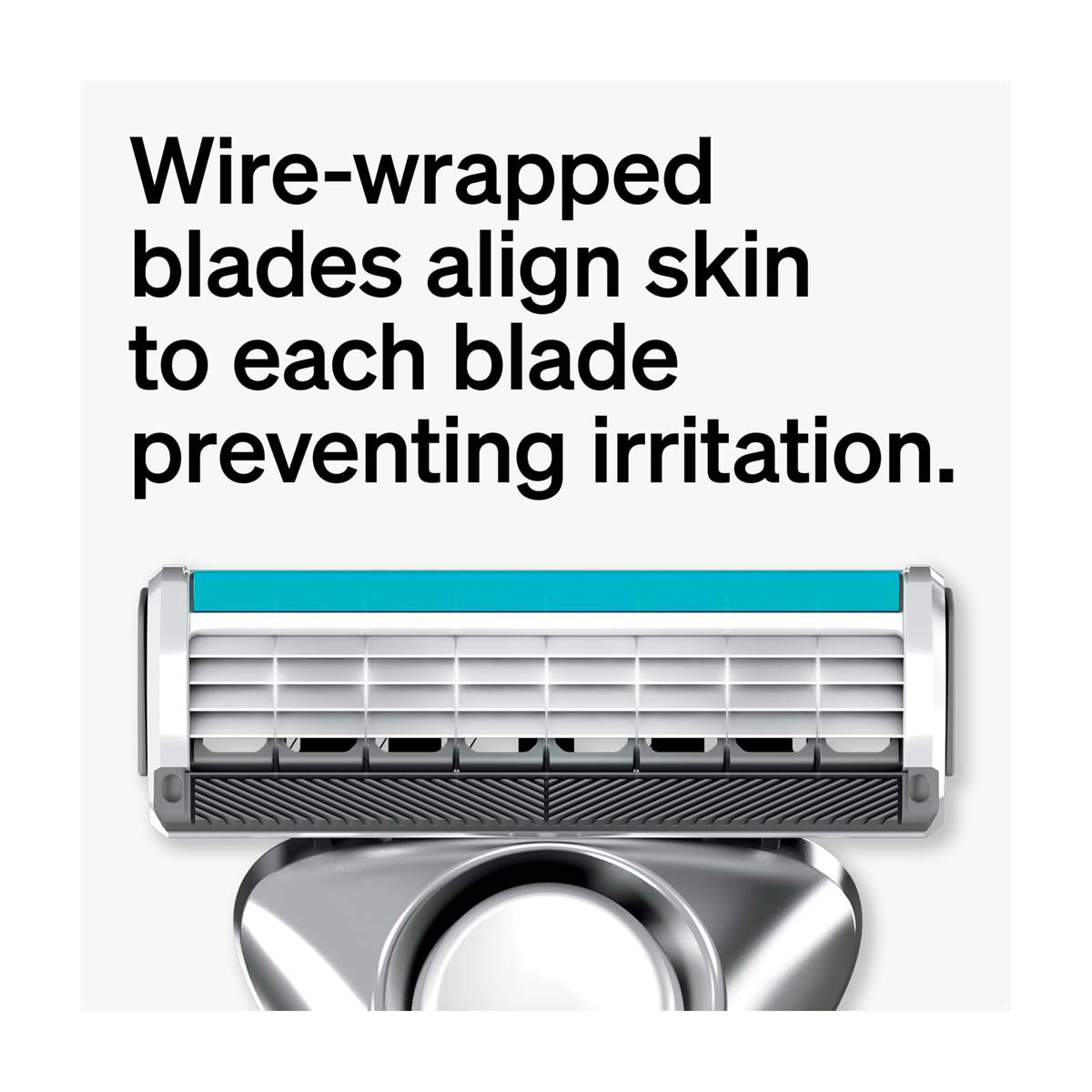- THAT’S A WRAP – These razor heads feature wire-wrapped blades that optimally align skin to each of the four blades to give you an exceptionally close shave while preventing irritation