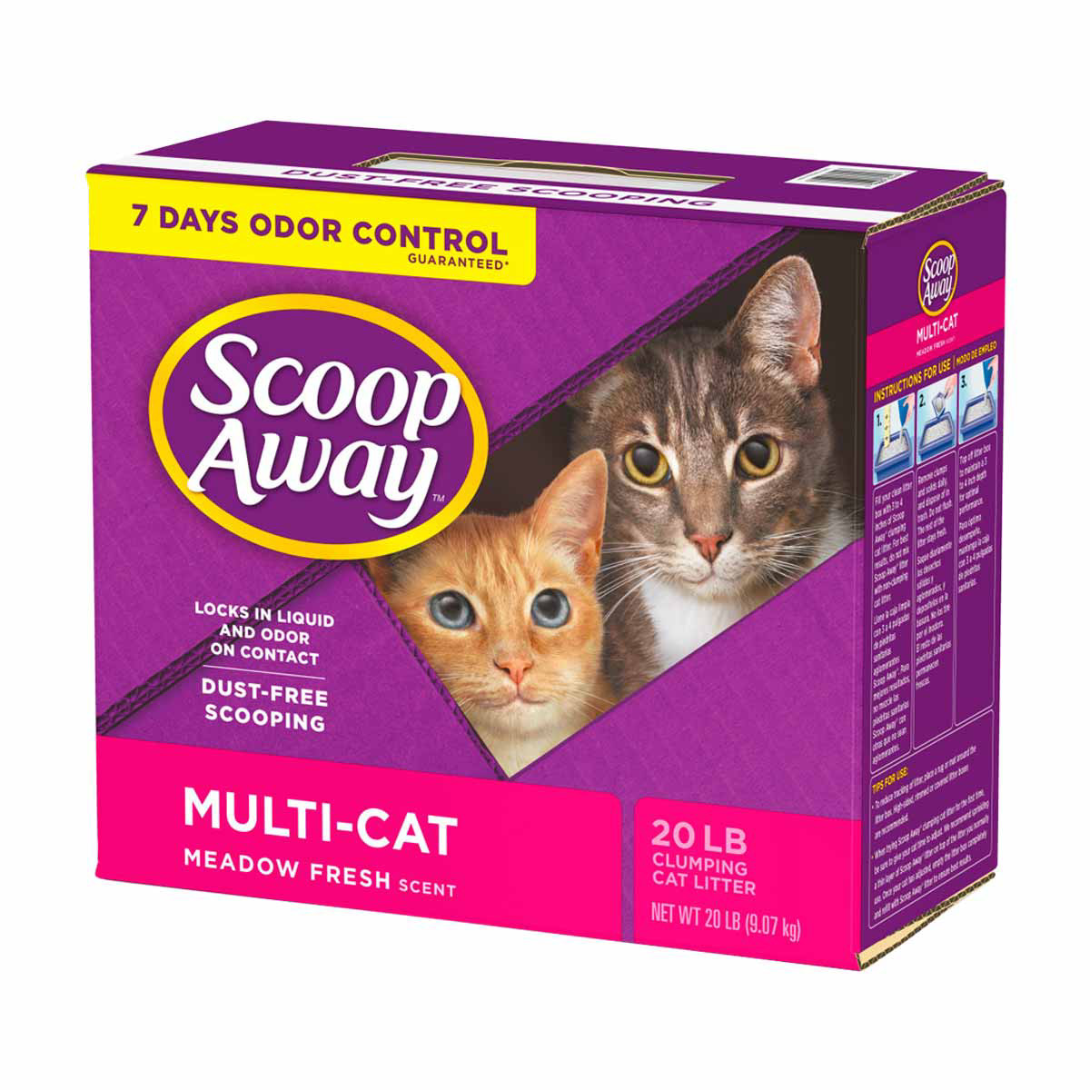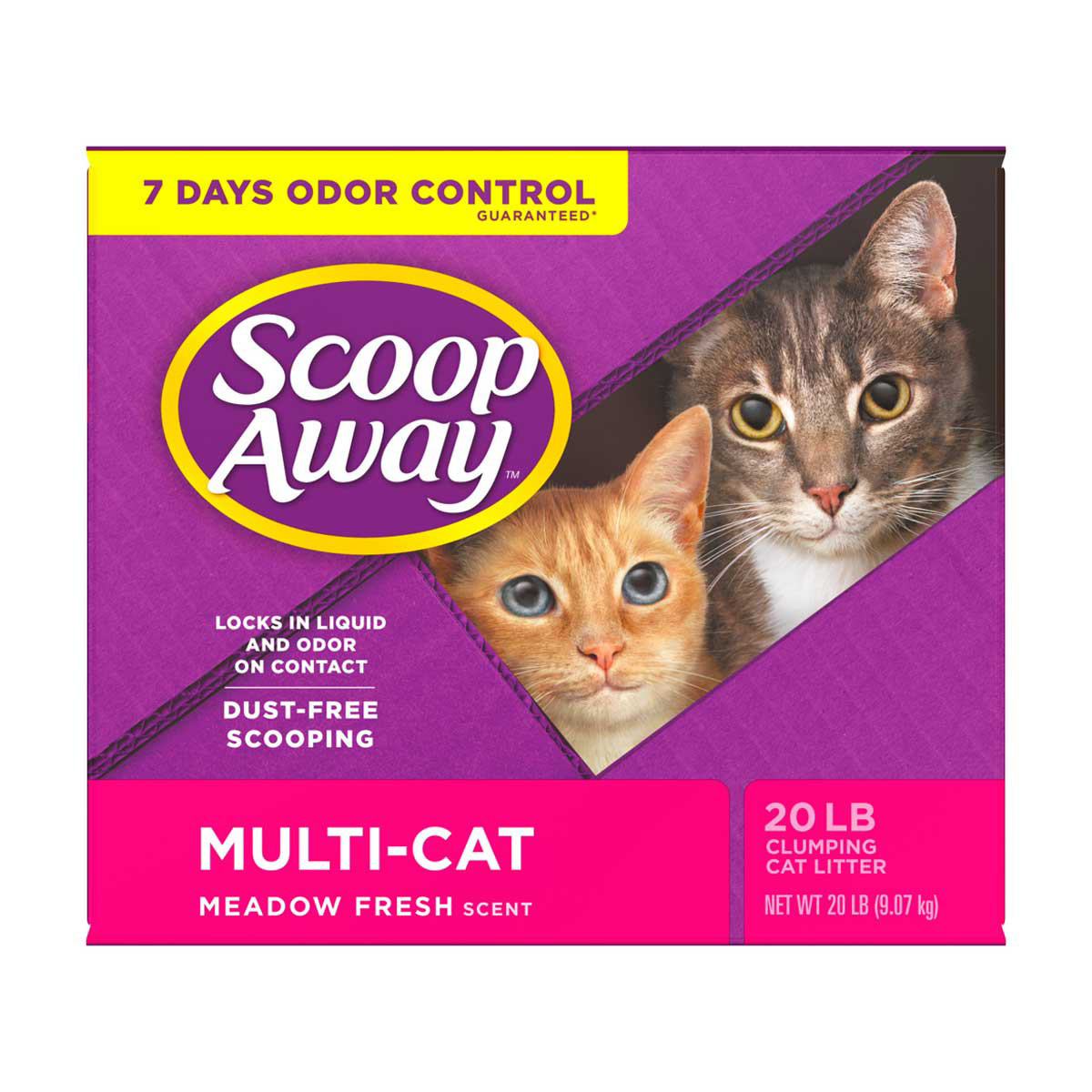 - MULTI-CAT CLUMPING LITTER: Fight litter box odors with Scoop Away Multi-Cat clumping clay cat litter in a Meadow Fresh scent that deodorizes extreme cat litter smells; Packaging may vary
