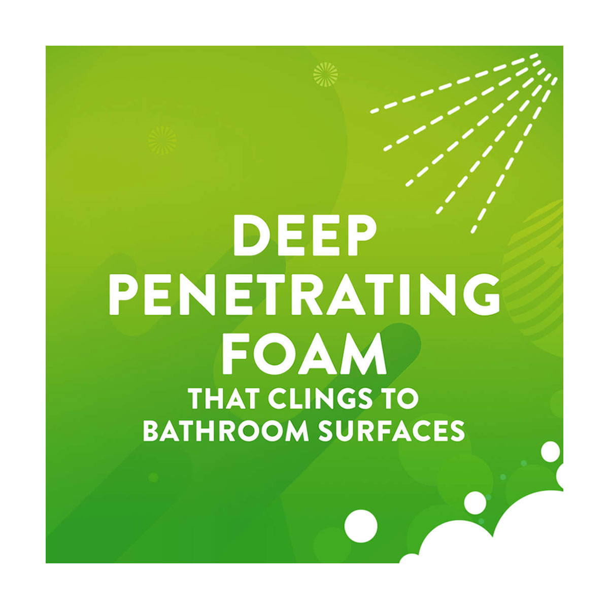 • Deep-penetrating foam clings to surfaces, erasing mold and mildew stains