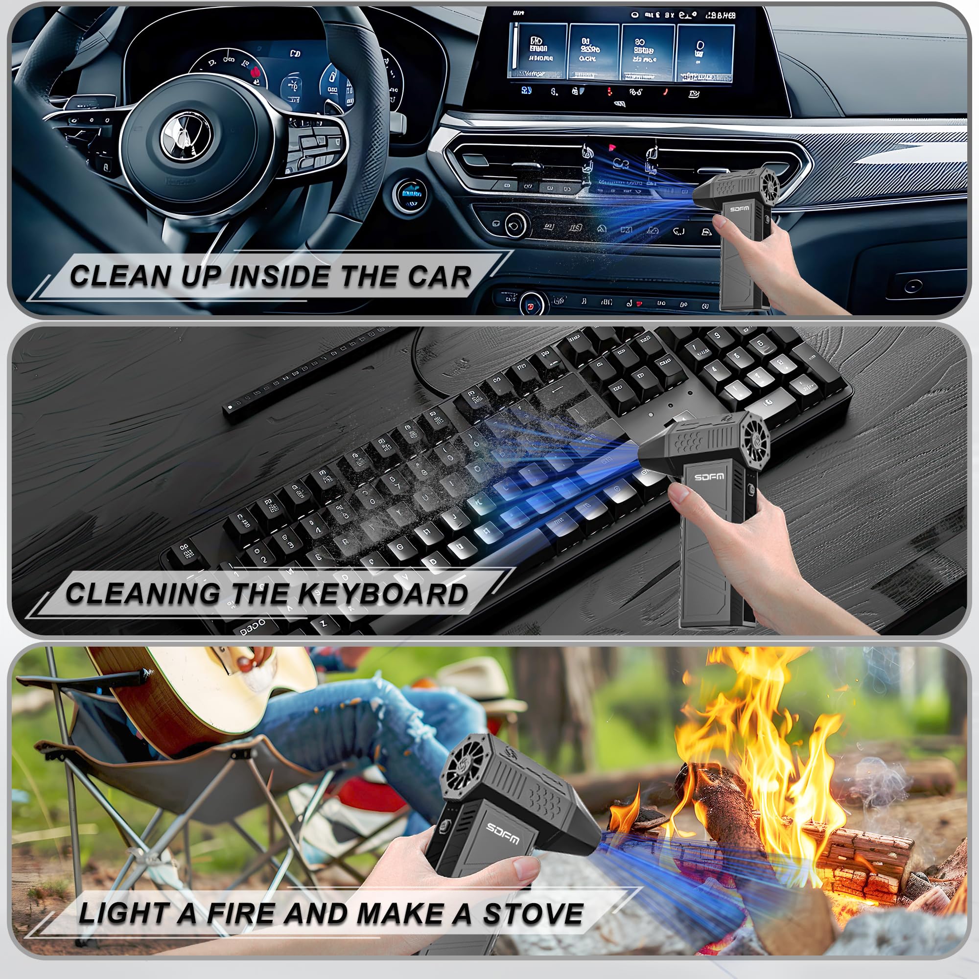 - Multi use -The electric air blower is perfect to clean computer keyboard, laptop, camera, car seat and blinds etc.Can even be used in products that need to be inflated, such as inflatable beds, lifeboats, etc,And Be Used For Picnics And Making Fires, Cleaning The Ground, And Cleaning Pet Hair. -- If you have any questions about the use of the product, please contact us, we will solve it for you within 24.