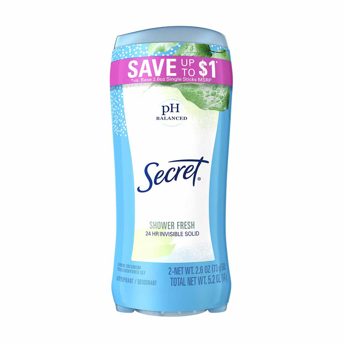 • Secret Invisible Solid Antiperspirant and Deodorant, Shower Fresh, 2.6 oz each, 2 ct