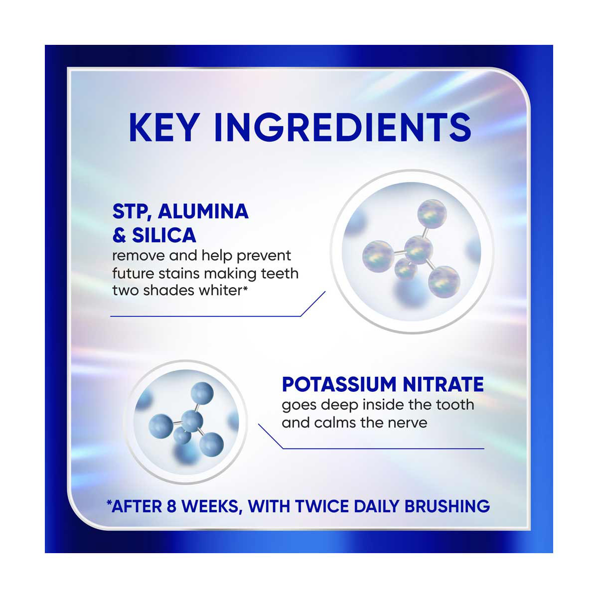 - 2 shades whiter teeth after 8 weeks (2) and 24/7 sensitivity protection (2) in an enamel safe formula