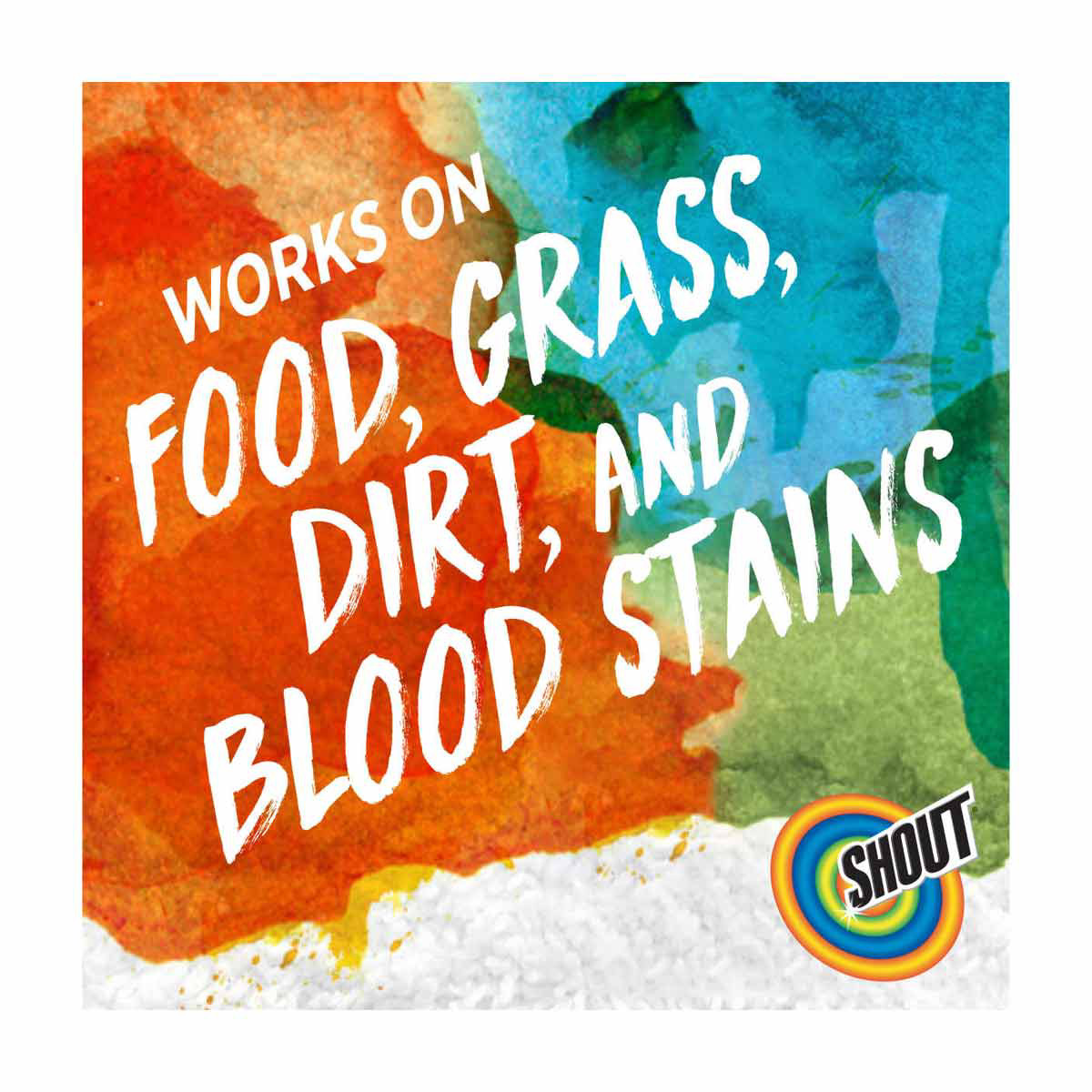 • Works on a wide range of everyday stains like food, grass, dirt, and blood