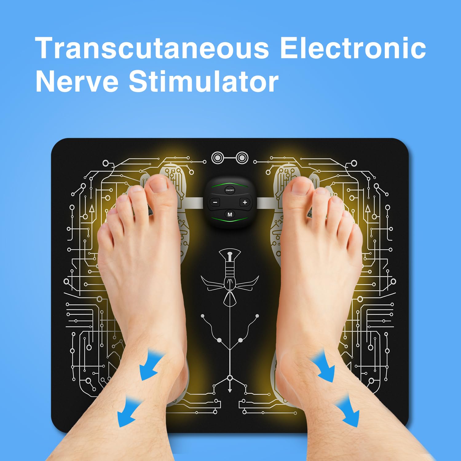 - Through Transcutaneous Electronic Nerve Stimulator technology, this product is designed with a foot mat as electrodes to stimulate your feet, ankles, achilles tendons as well as temporary relief of pain associated with sore and aching muscles