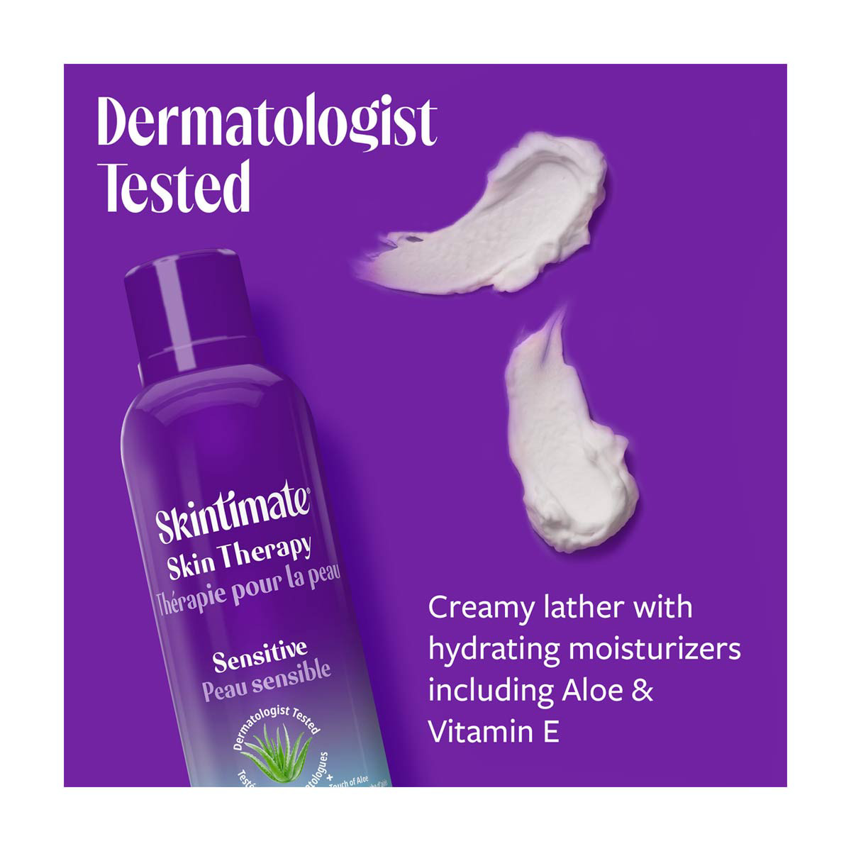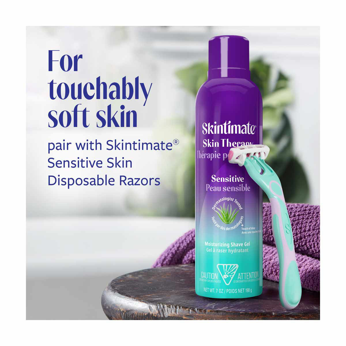 - Dermatologist-tested Skintimate shave gel for women is gentle on sensitive skin.