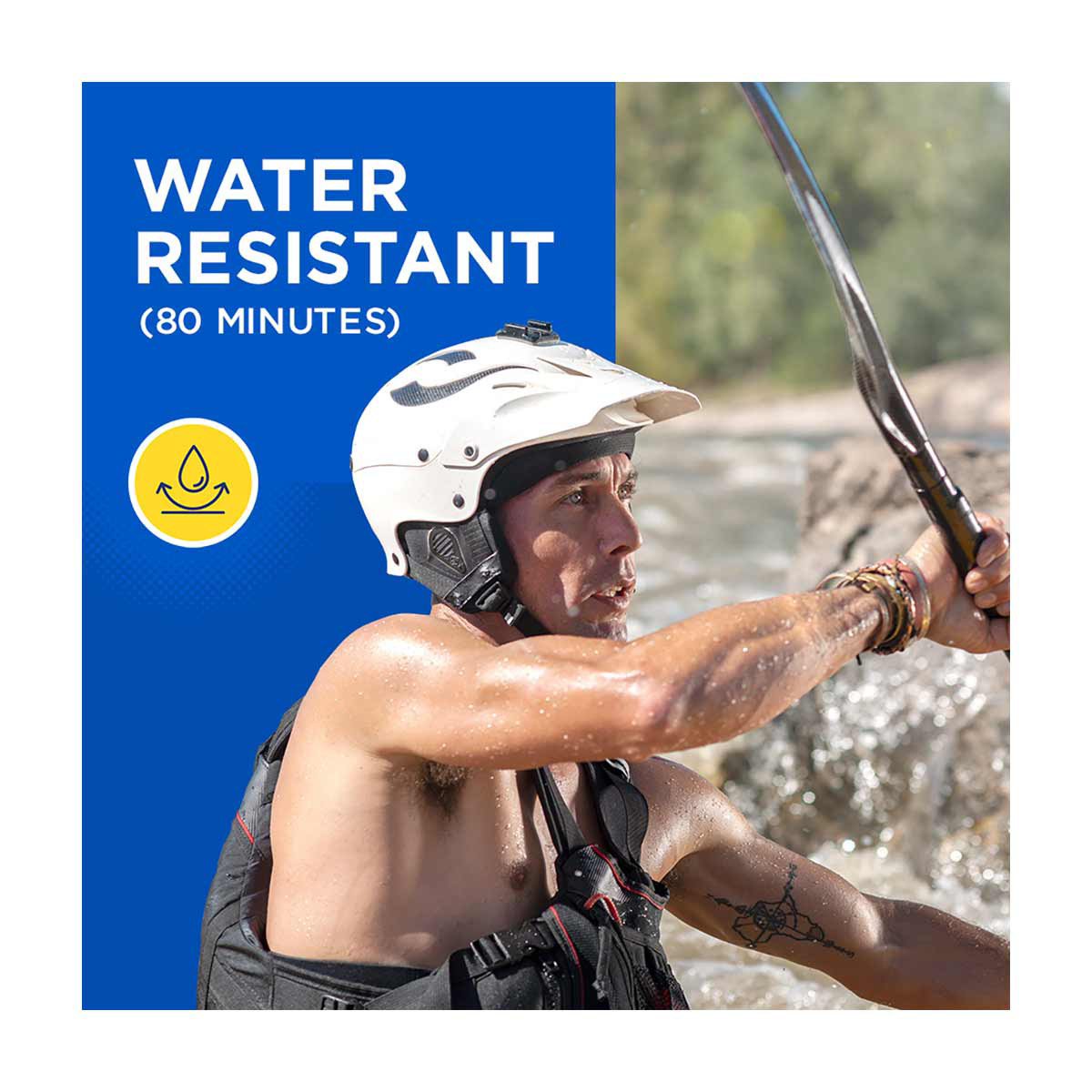- Coppertone Sport SPF 50 sunscreen lotion is water resistant (80 minutes), and stays on strong when you sweat