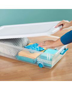 - Clear base for quick viewing of contents and recessed lid for stacking