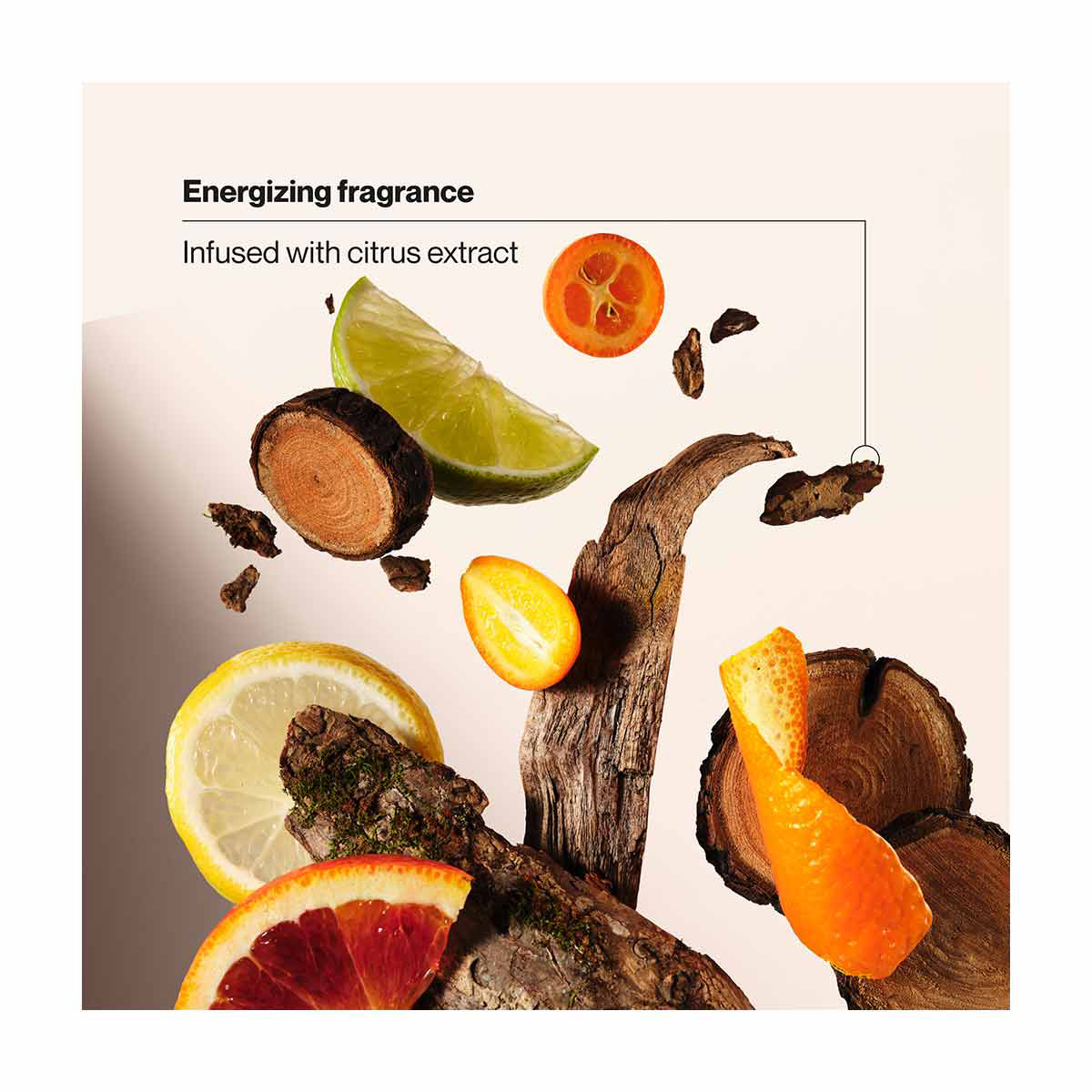 • Energizing citrus and sandalwood scent keeps you fresh all day