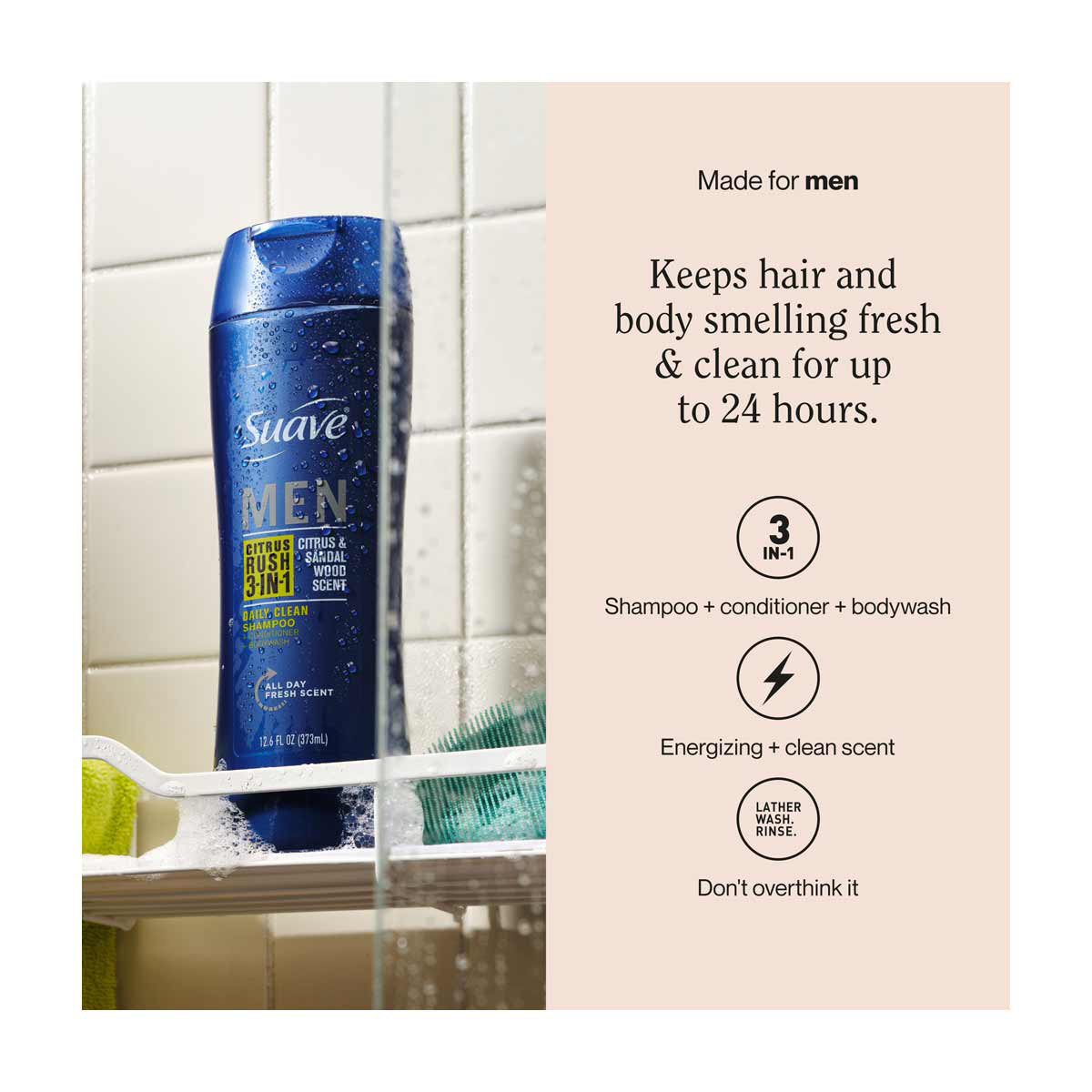 Suave Men Citrus Rush 3-in-1 Shampoo, Conditioner & Body Wash, 12.6 oz