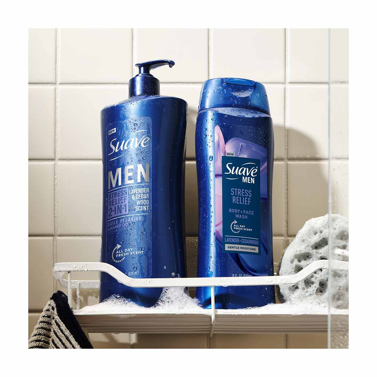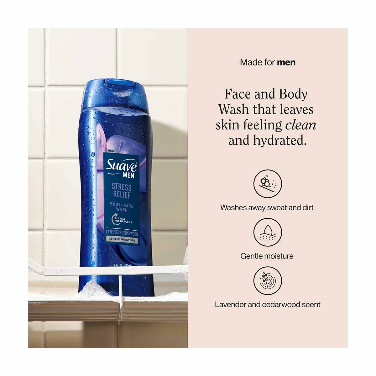 Suave Men Stress Relief Body + Face Wash, 18 oz