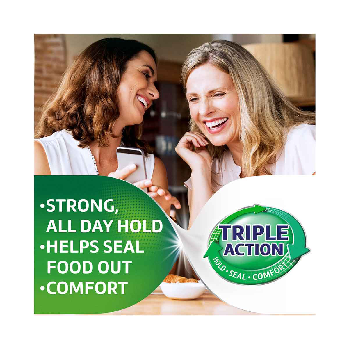 - Super Poligrip denture products seal out food particles to prevent gum irritation