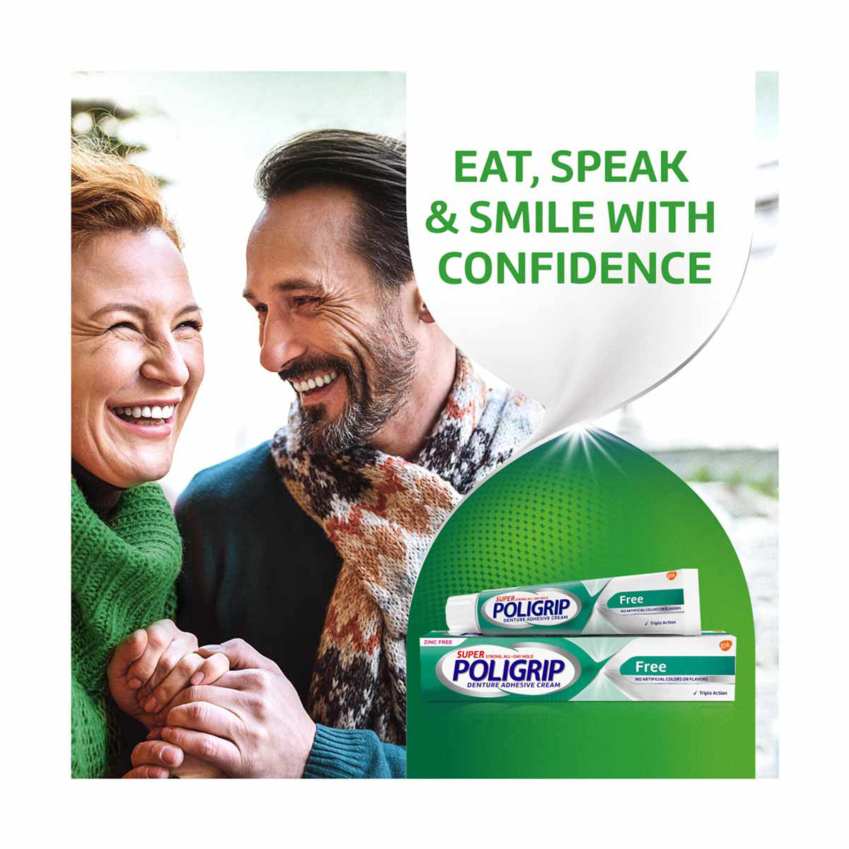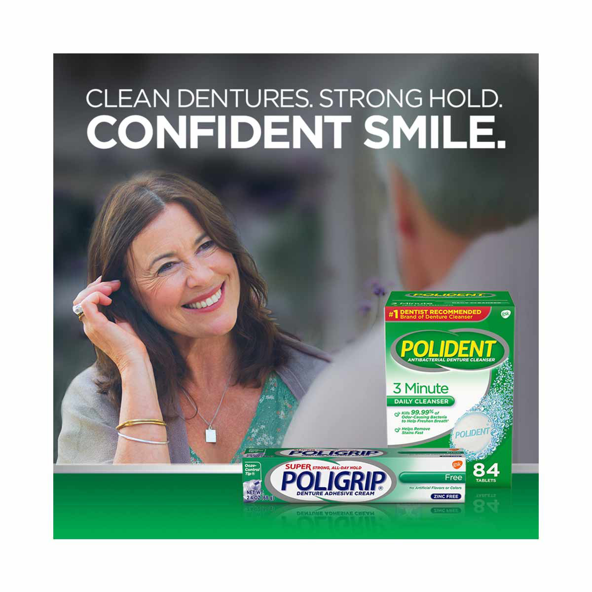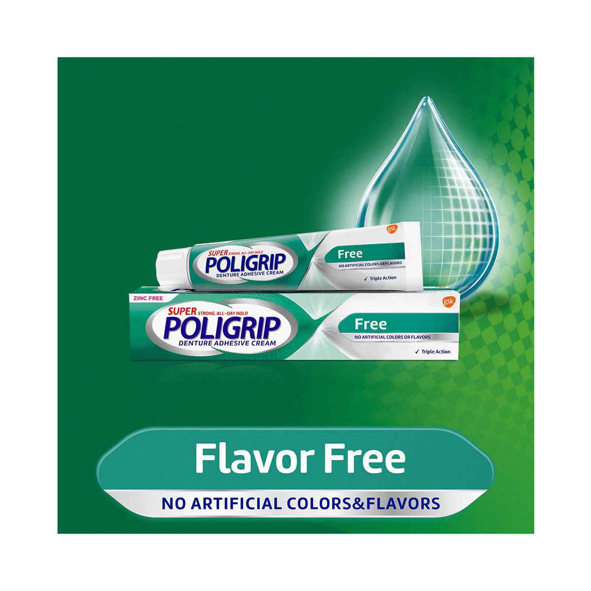 - Super Poligrip denture adhesive cream features a zinc free formula
