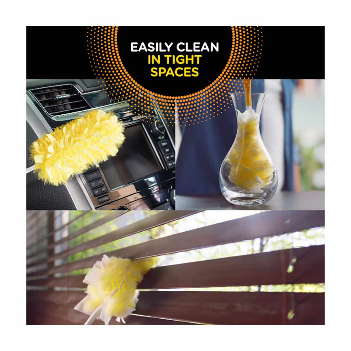- Dusting is easier than ever. Capture dust in every direction with 360 degreesof dust trapping and locking fibers, you can capture 3X more dust than a feather duster.