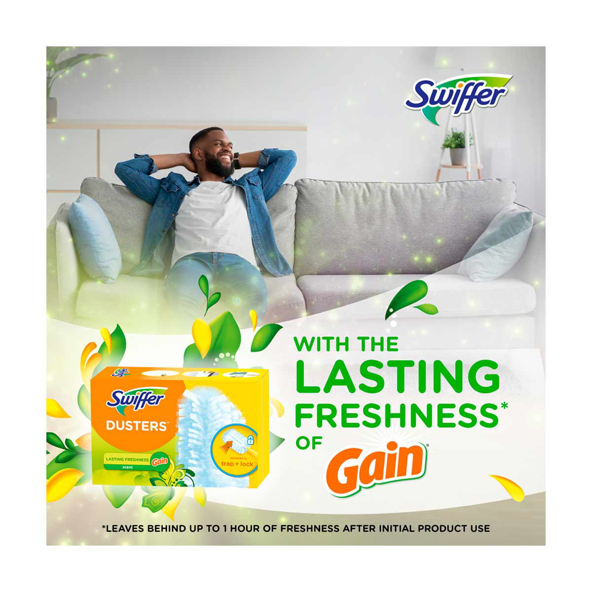 - Enjoy the lasting freshness* of Gain scented Swiffer Dusters*Leaves behind up to 1 hour of freshness after initial product use