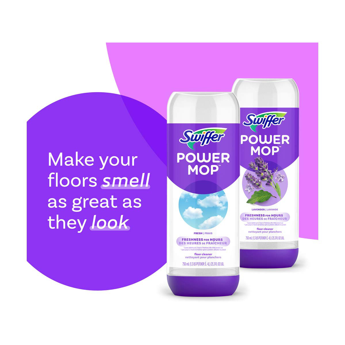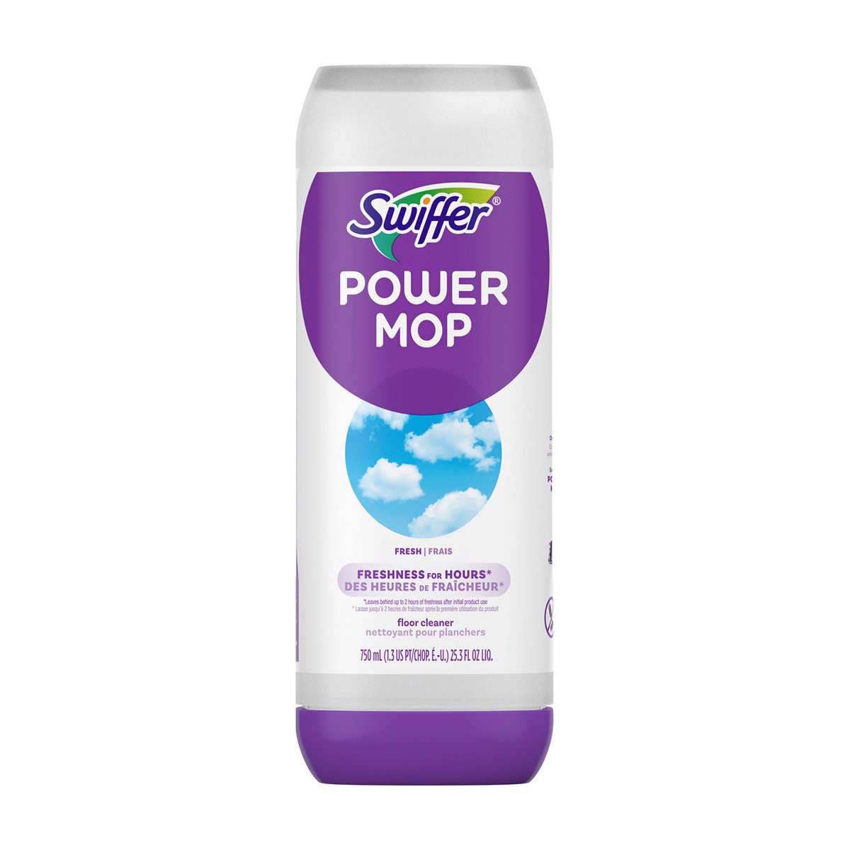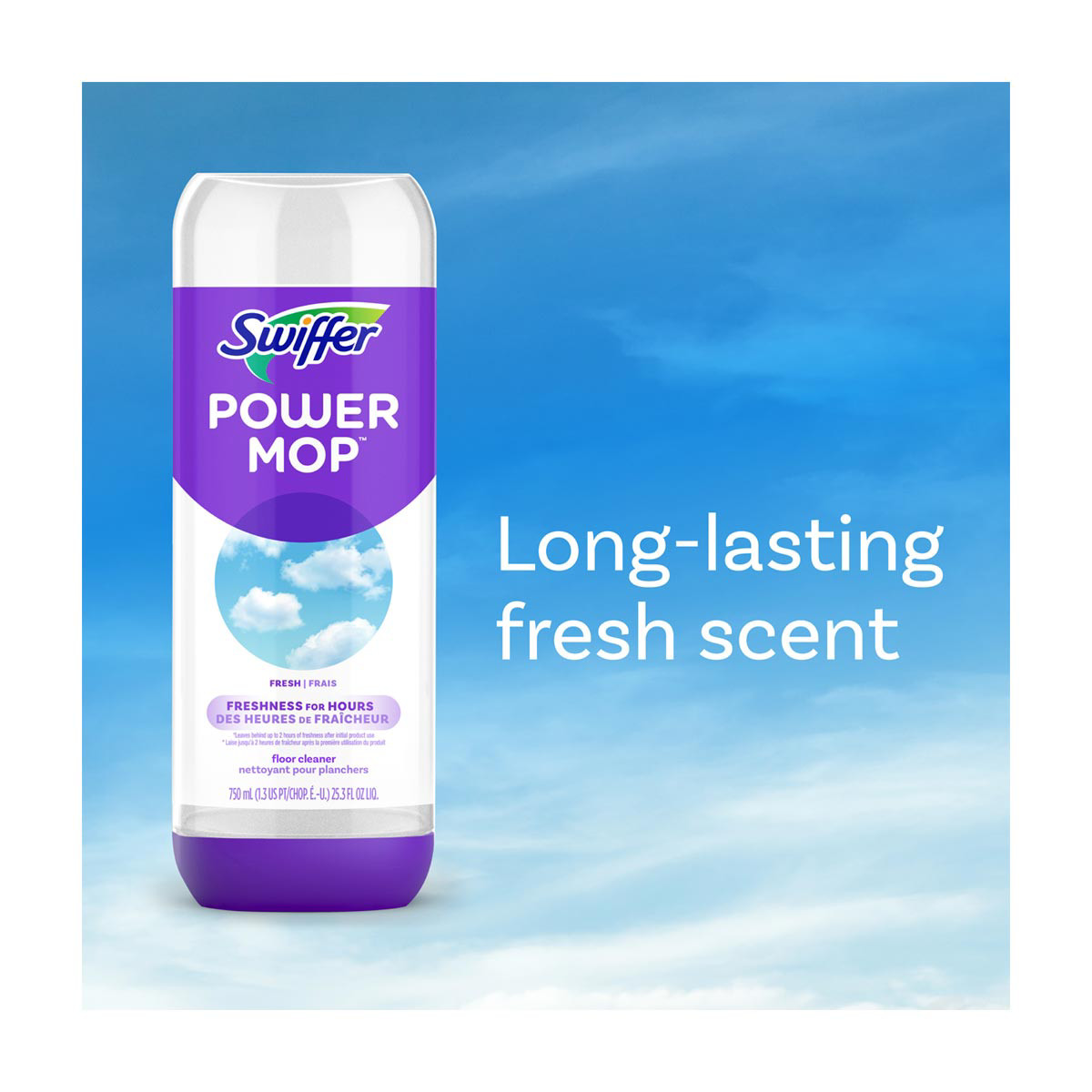 - Includes 1 25.3 fl oz bottle of Swiffer PowerMop Floor Cleaning Solution, Fresh Scent