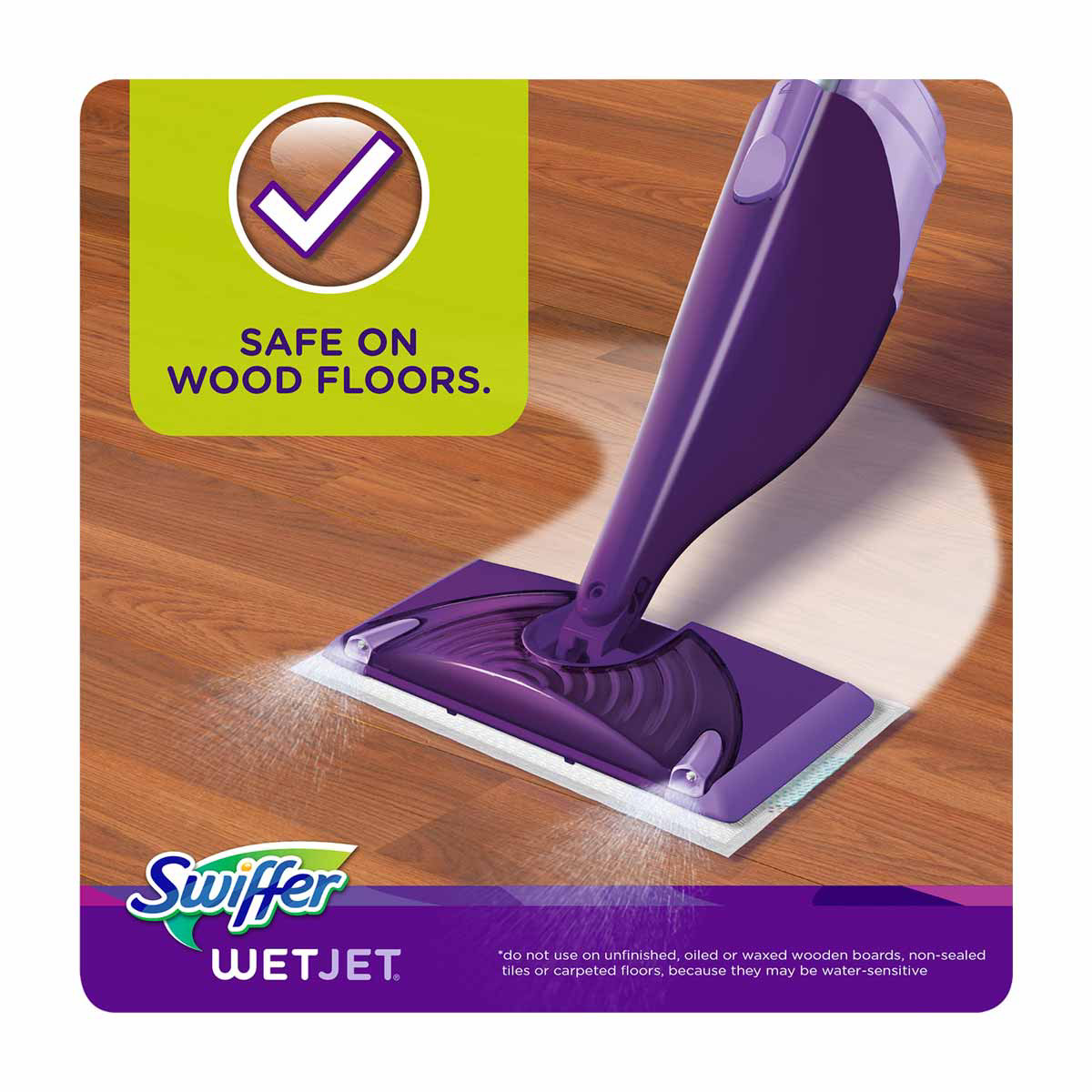 - For best end results on your hardwood floor, use with Swiffer WetJet Spray Mop and Swiffer WetJet solutions. There's a perfect solution for any cleaning need